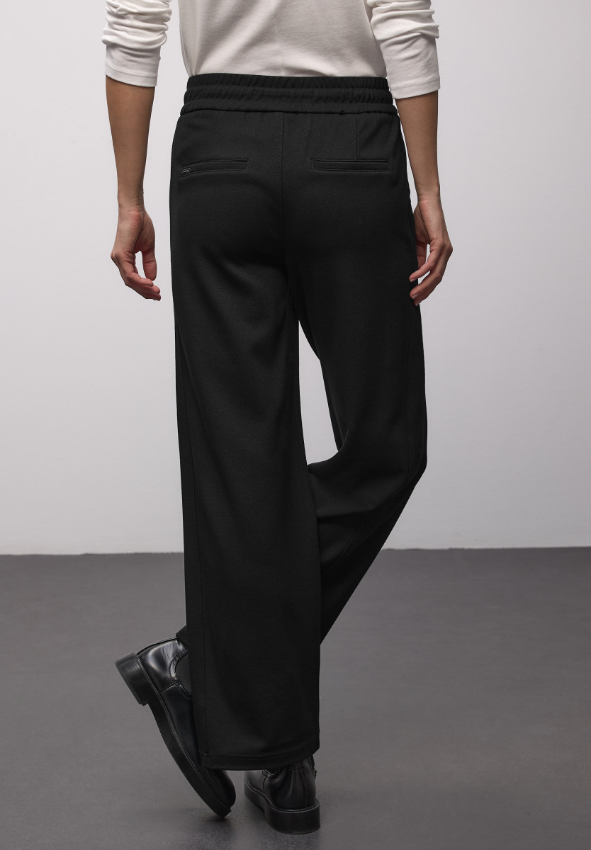 Die Hose von Street One für Damen zeigt sich im Casual Fit mit Mid Waist und geradem Beinverlauf. Tape-Details an den Seiten setzen modische Akzente. Der elastische Bund mit Tunnelzug und seitliche Taschen sorgen für Tragekomfort und Funktionalität. Ideal für sportive Alltags-Looks. Damenhose im Casual Fit Mid Waist und Straight Legs Tape-Details Elastischer Bund mit Tunnelzug Seitliche Taschen Material: 73% Viskose, 24% Nylon, 3% Elasthan
