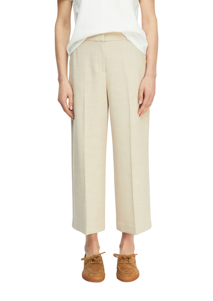 Die strukturierte Culotte überzeugt mit ihrem fließenden Wide Leg-Schnitt und hochwertiger Webware-Qualität. Der Formbund mit Haken, Öse und Reißverschluss sitzt perfekt auf Mid-Rise-Höhe. Praktische Eingrifftaschen komplettieren das feminine Design. Sie tragen diese Regular Fit-Hose in Ankle-Länge souverän im Business, lässig im Casual-Look oder festlich gestylt mit eleganten Accessoires. Ein vielseitiges Must-have für stilbewusste Looks zu jedem Anlass.