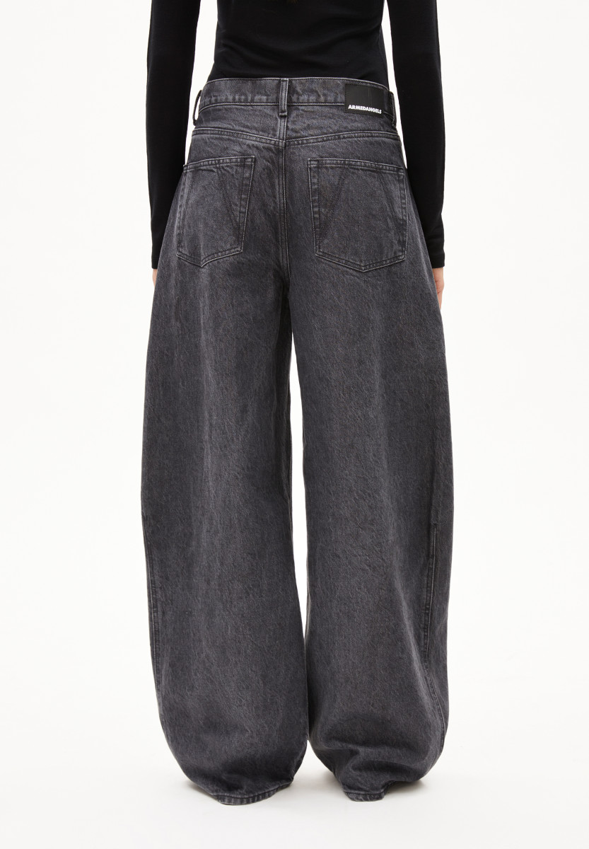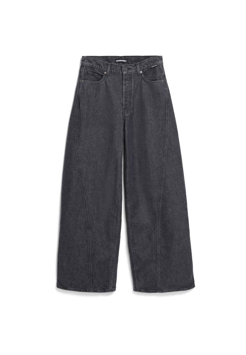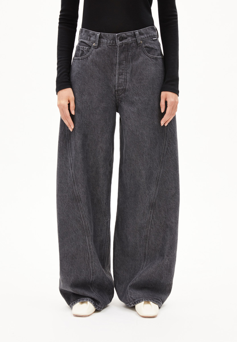 Diese Wide-Leg Damen Jeans ist das ultimative Fashion-Statement für einen modernen und entspannten Look, da sie mit ihrer extrem weiten Beinform und der dunklen Waschung Retro-Vibes mit aktueller Streetwear-Ästhetik vereint. Der Schnitt dieser Jeans ist bewusst oversized und voluminös, wobei das Bein vom Oberschenkel bis zum Saum extrem weit verläuft. Dies sorgt für eine dramatische Silhouette, die Ihre Beine optisch streckt, besonders in Kombination mit dem High-Waist-Schnitt, der die Taille betont und ideal dazu geeignet ist, kurze Oberteile auszubalancieren. Die Dark Wash (Schwarz oder sehr dunkles Anthrazit) verleiht der Hose einen edlen, vielseitigen Charakter, der sich eleganter stylen lässt als klassisches Blau. Ein besonderes Design-Merkmal sind die prominenten vertikalen Nähte (oder Teilungsnähte) auf der Vorderseite jedes Beins; dieses Detail unterstreicht die besondere Form der Hose und bietet einen modernen Akzent. Für ein perfektes Styling tragen Sie die Jeans idealerweise mit kurzen oder eng anliegenden Oberteilen (Cropped Tops, figurbetonte Strickwaren) oder stecken Blusen ein, um die betonte Taille und das Volumen des Beins perfekt auszubalancieren. Diese Wide-Leg Statement-Jeans ist ein Must-have für alle, die in Sachen Denim neue Wege gehen möchten. Holen Sie sich den coolen, mühelosen Look und machen Sie die Straße zu Ihrem Laufsteg!
