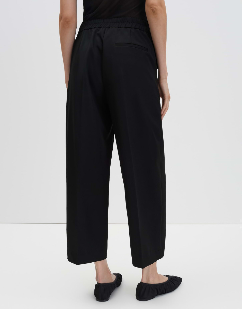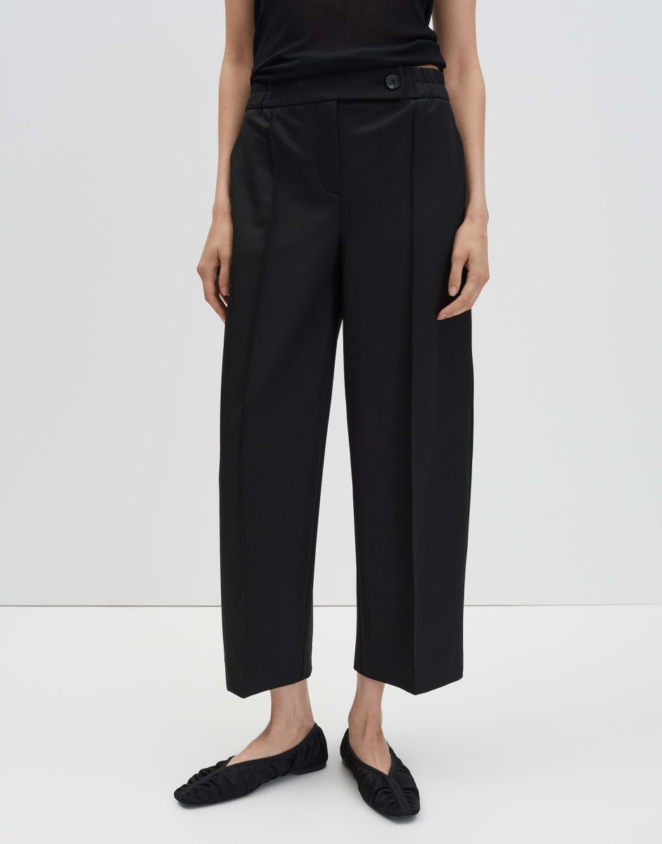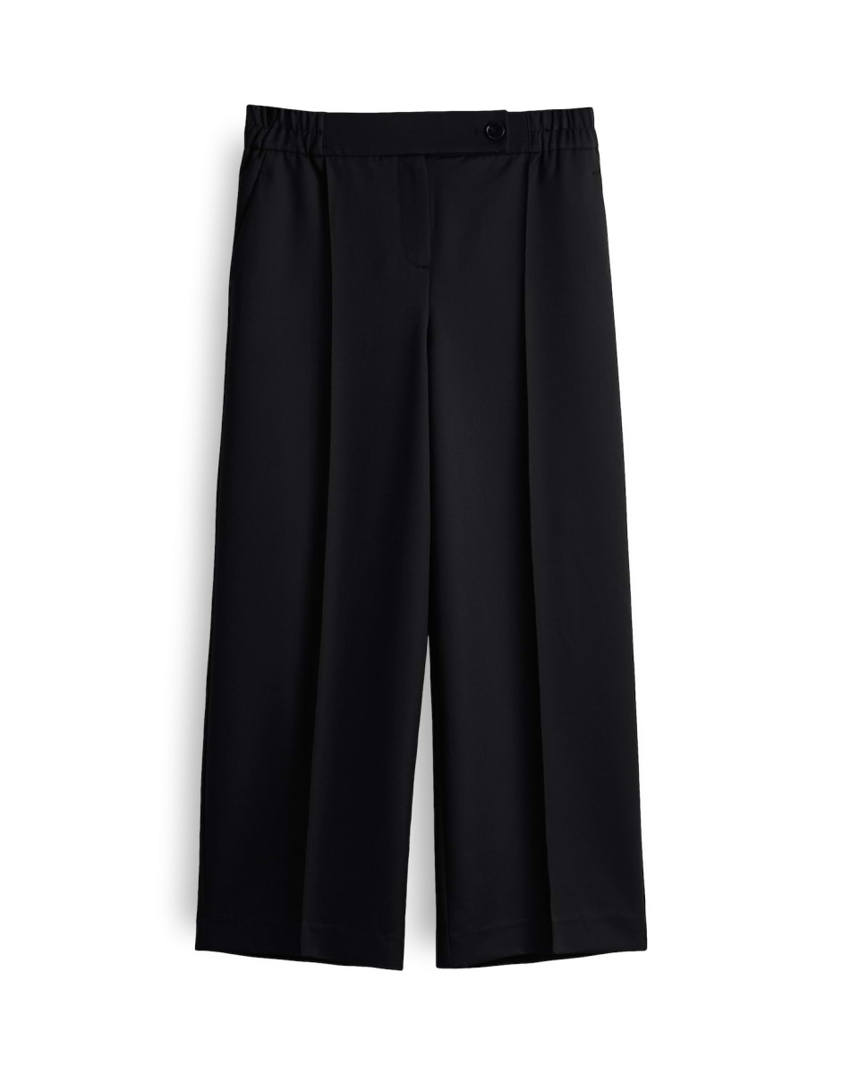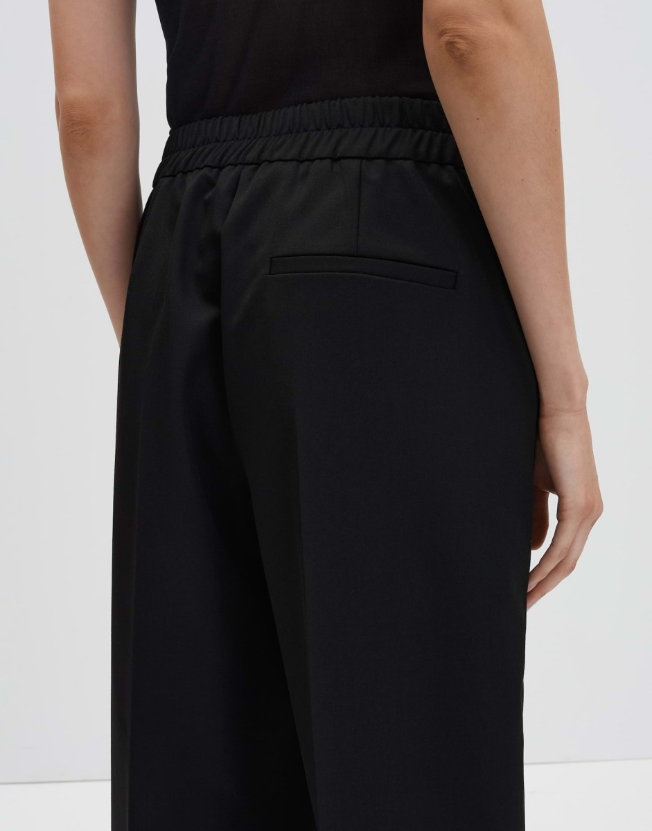 Weit am Oberschenkel | Ovaler Beinverlauf | Webware | Dezente Twillstruktur | Glatter Griff | Pflegeleicht | Knitterarm | Mélange-Effekt | Französische Taschen | Abgesteppte Biese vorne, Bügelfalten hinten | Verdeckter Zip-Fly | Gummibund hinten