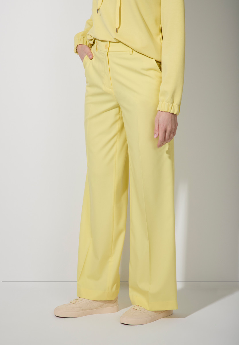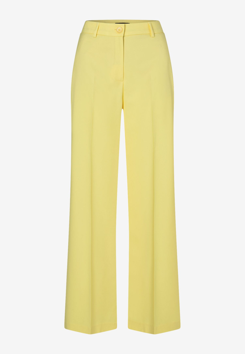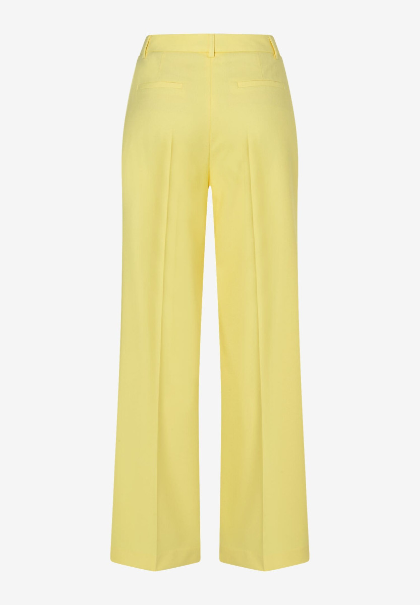 Die moderne weite Hose von MORE & MORE in sommerlichem Gelb wird mit passendem Blazer zum super stylishen Businessanzug sie funktioniert aber auch ganz leger mit Rippenshirt Jeansjacke und Sneakers.