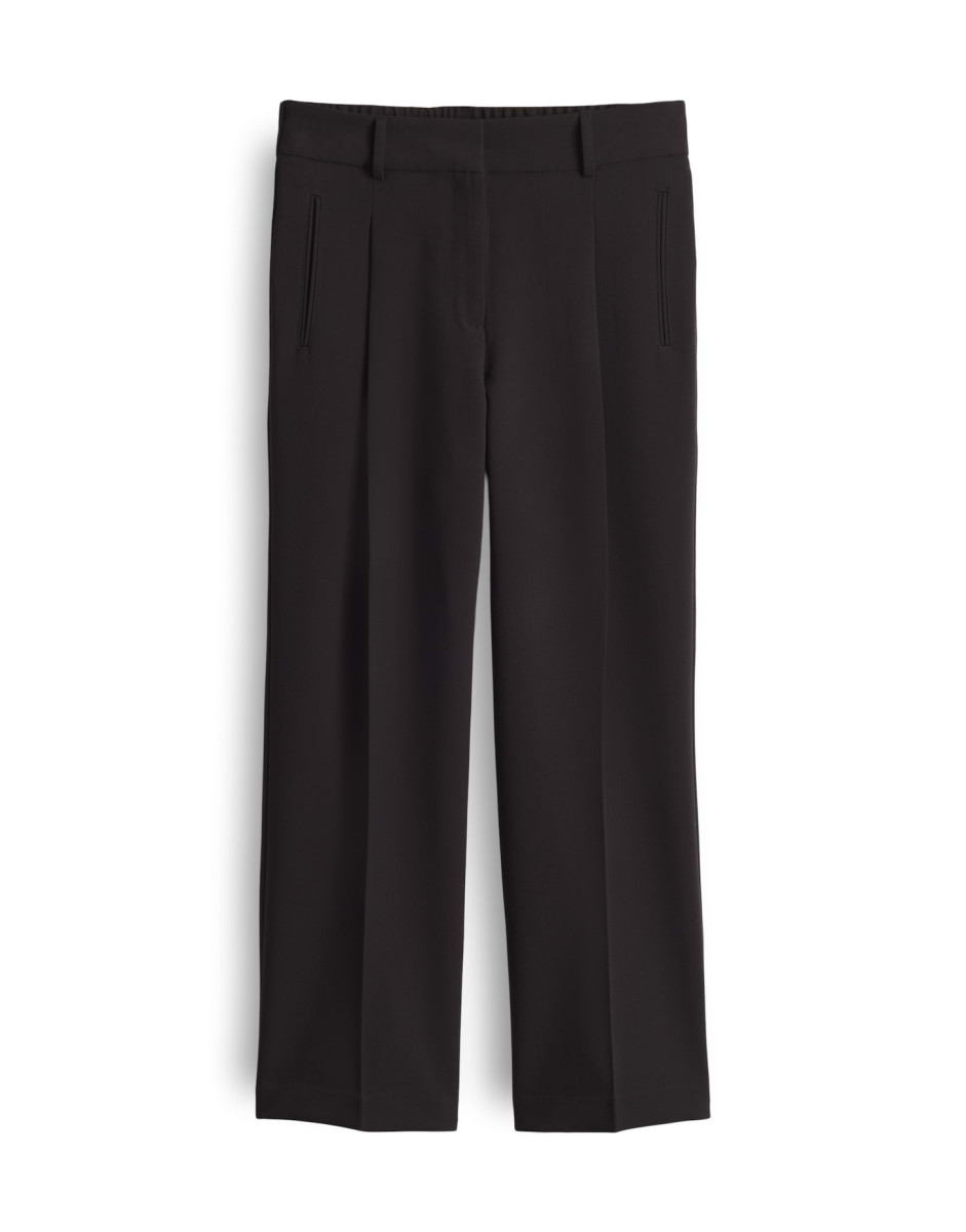 Diese Hose überzeugt mit einer lockeren Passform am Oberschenkel und einem geraden Beinverlauf, der für eine zeitlose Silhouette sorgt. Die Hosenbein-Innenlänge beträgt ca. 68 cm in jeder Größe. Der elastische Gummibund im Rücken garantiert einen angenehmen Sitz und hohen Tragekomfort. Für einen stilvollen Look sorgen Bund- und Bügelfalten sowie der verdeckte Zip-Fly und Gürtelschlaufen.