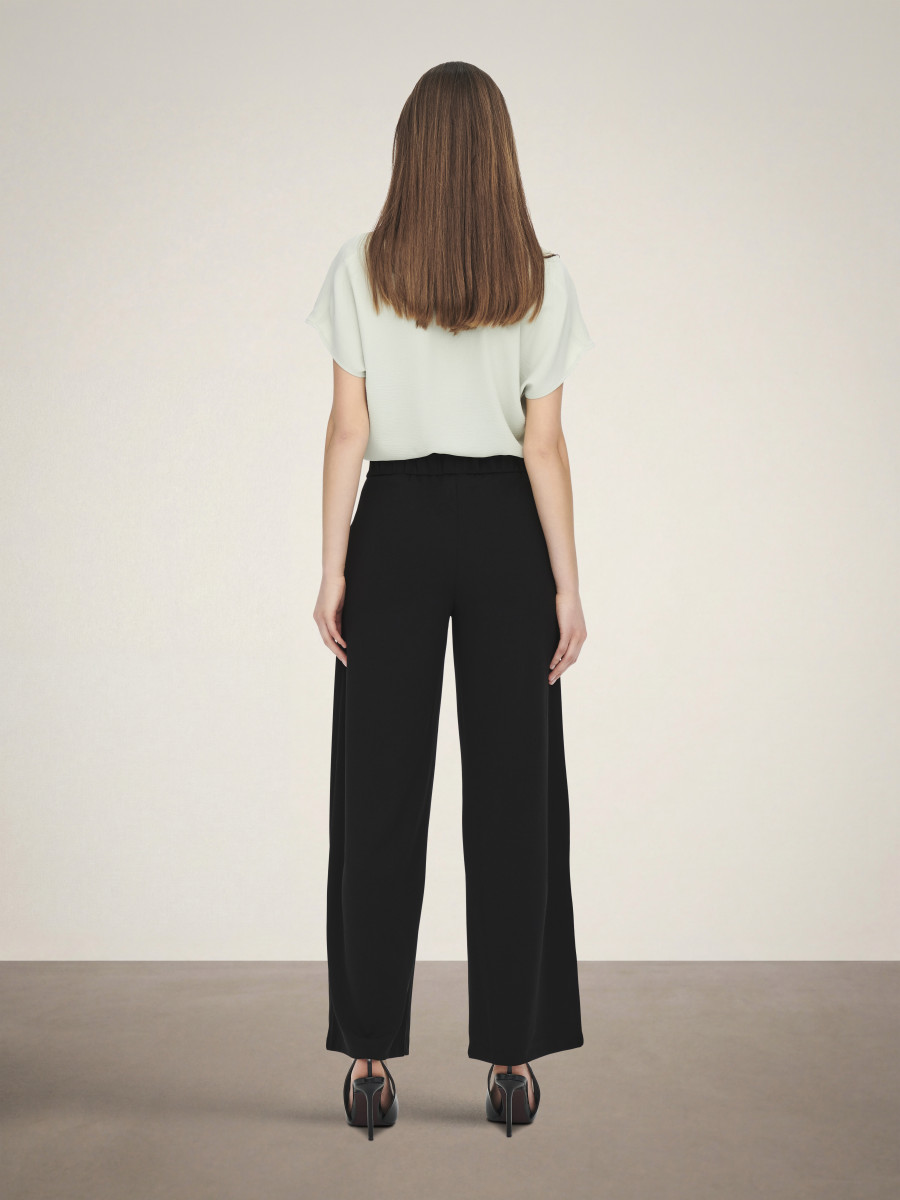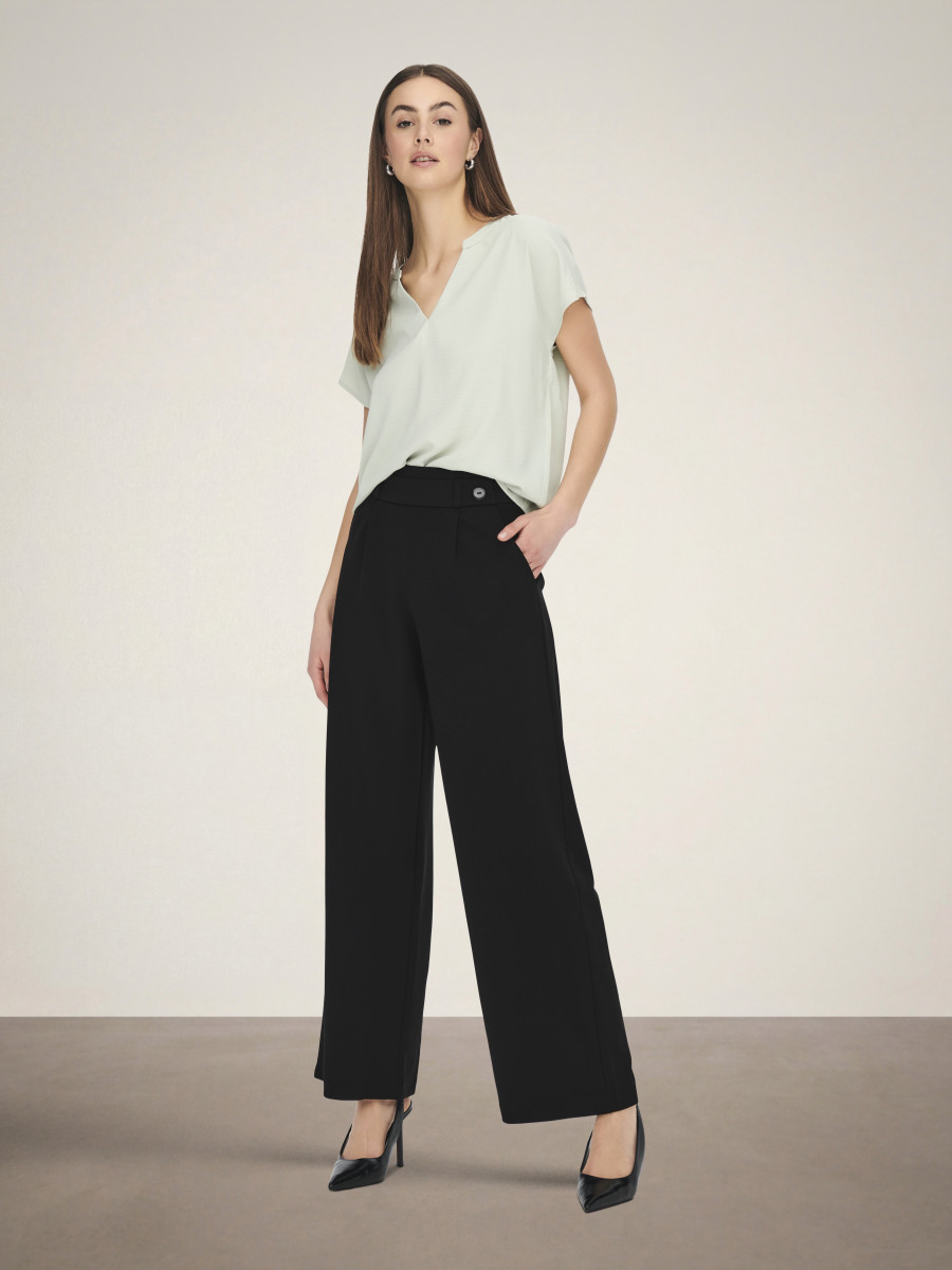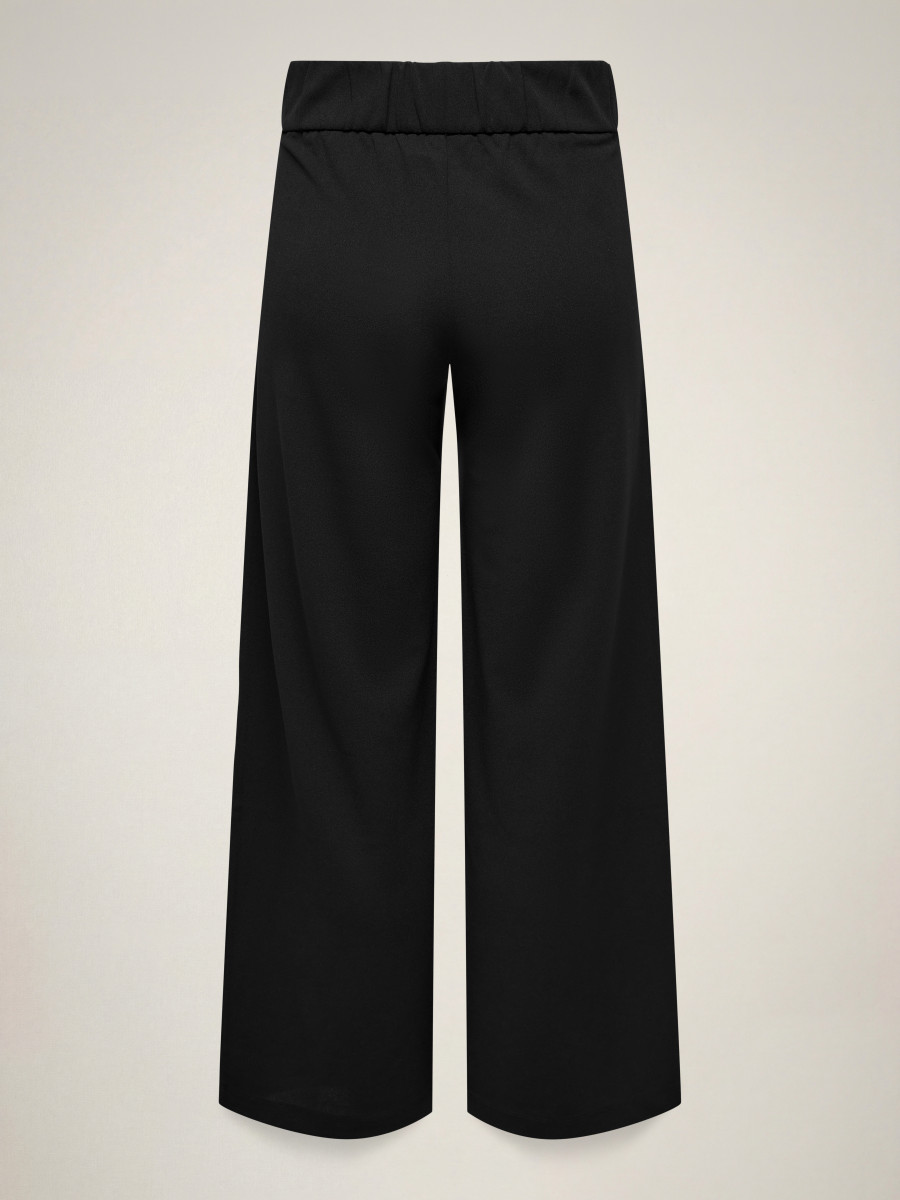 Finde die perfekte Hose und kombiniere sie im Alltag mit einer schlichten Bluse und Sneakern oder style sie abends mit einem festlichen Oberteil und High Heels.Jersey ist ein weiches, dehnbares Material, das für maximalen Komfort sorgt.JDY ist ein internationales Modelabel, das modebewussten Frauen eine vollständige Palette an bezahlbaren und trendigen Produkten bietet. - Produkttyp : Hose mit weitem Beinschnitt - Taschen : Vordertaschen - Länge/Größe : Lang - Details : Elastischer Bund im Rücken, Knopf-Details - Passform : Weiter Beinschnitt