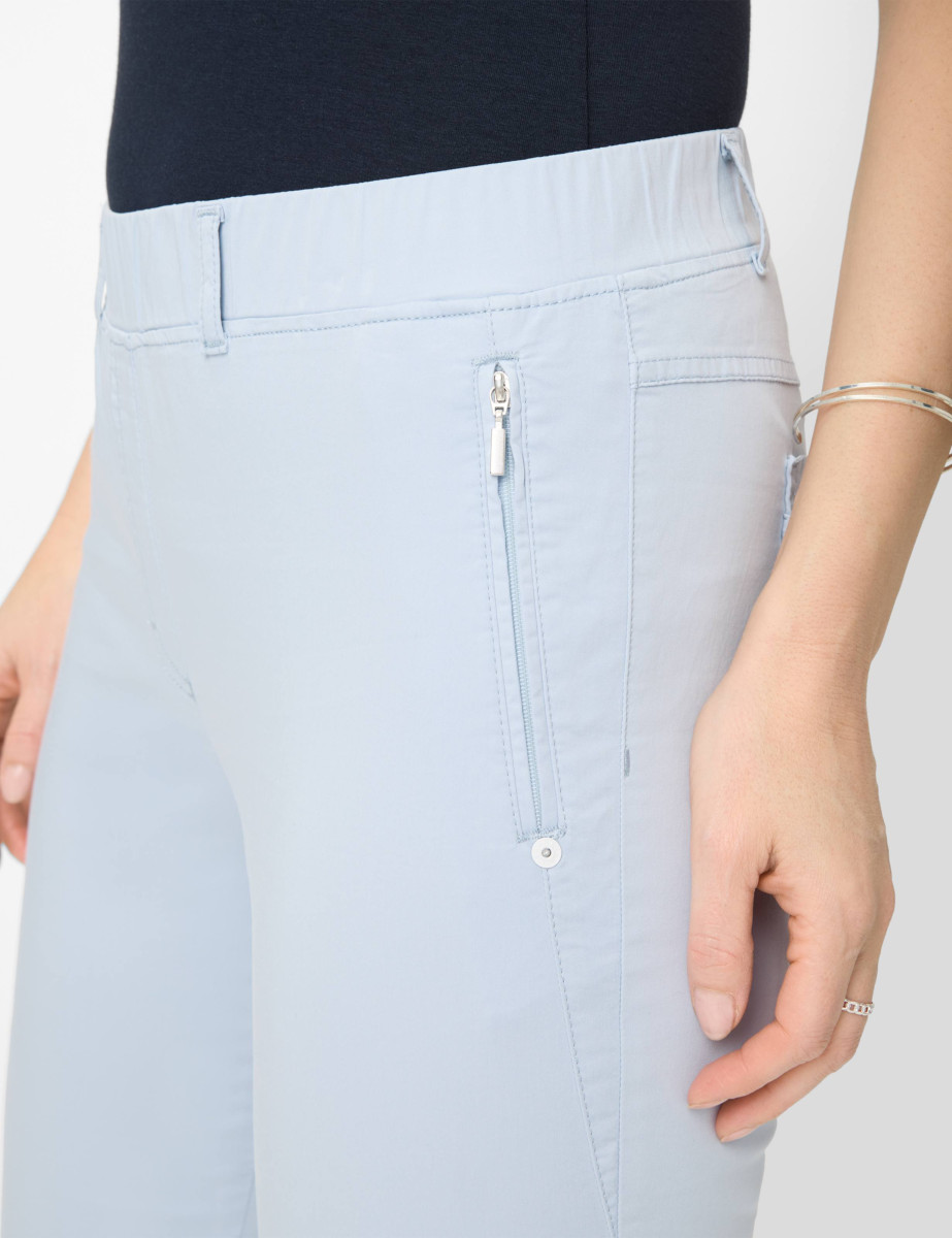 Für Damen ist der Style LAVINA ZIP 6/8 von Raphaela ein Lieblingsstück. Abgerundet mit Sneakern oder Sandalen empfiehlt sich die 6/8 Five-Pocket-Hose als stilsicheres Kombinationstalent. Die Super Slim Fit Damenhose mit hoher Taille betont dank der superschlanken Passform Ihre Beine. Unkompliziert ergänzt mit Fake-Verschluss - einfach reinschlüpfen und gut aussehen. Durch die Reißverschlusstaschen erhält die Hose eine sportliche Note. Sie ist zusätzlich mit attraktiven Stickereien verziert. Die extrem elastische Dynamic-Qualität garantiert Ihnen uneingeschränkte Bewegungsfreiheit mit optimalem Dehn- und Rücksprungsverhältnis. Bei dieser Five-Pocket-Hose bietet der nachhaltige, pflegeleichte und hautfreundliche Baumwollmix zudem ein vorzügliches Tragegefühl.