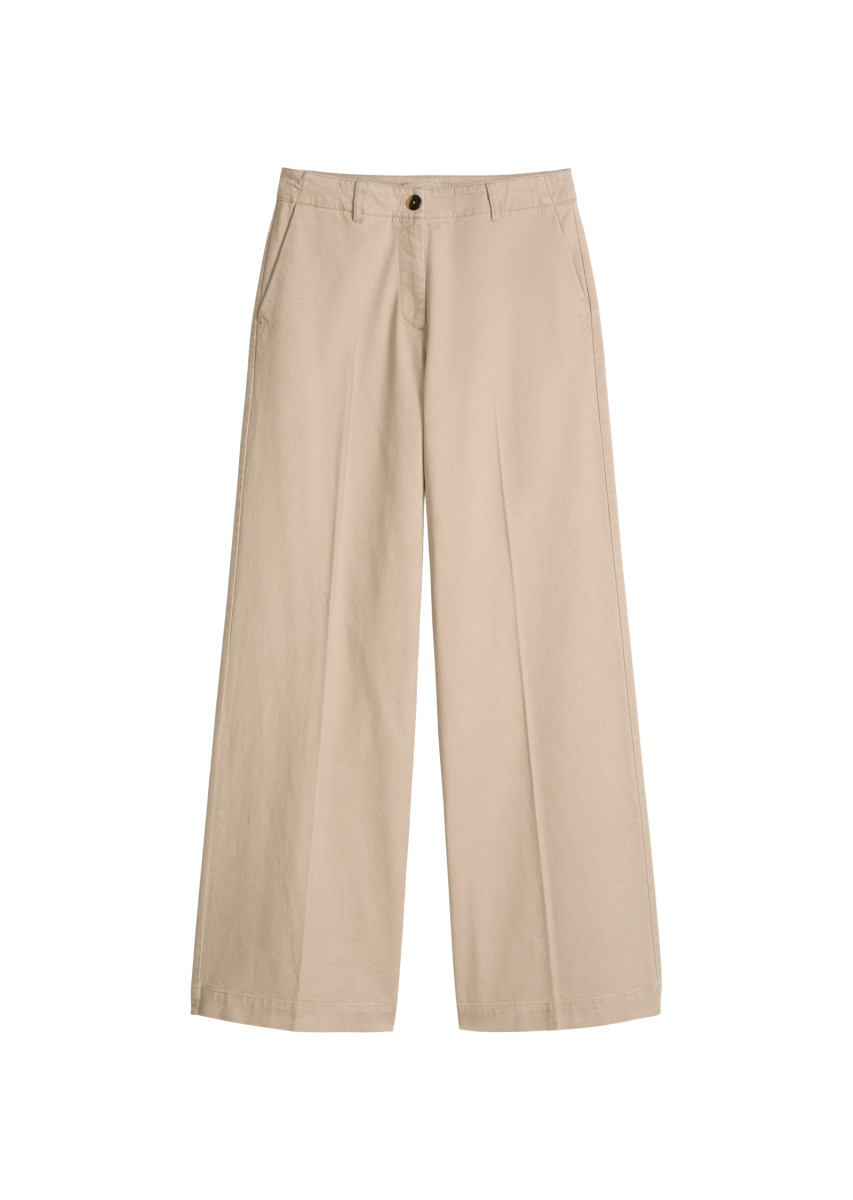 Die Hose Model Margo wide ist Teil einer Kollektion aus charakterstarken Fits, die zeitloses Design und langlebige Qualität mit besonderem Tragekomfort verbinden. Fits, die jede Saison funktionieren - verlässlich, klar, durchdacht - gefertigt aus Premium-Materialien und mit einem Auge für besondere Details. Die Hose hat einen modernen, weiten Schnitt mit normaler Leibhöhe und lässig langen Beinen. Sie setzt Taille und Beine gekonnt in Szene und ist damit die perfekte Alternative zur klassischen Jeans. Sie verfügt über eine cleane Bundverarbeitung, schräge Eingrifftaschen vorne und zwei geknöpfte Paspeltaschen hinten. Das Material ist ein sanft gebürsteter Stretch-Twill aus einem hochwertigen Bio-Baumwoll-Mix.