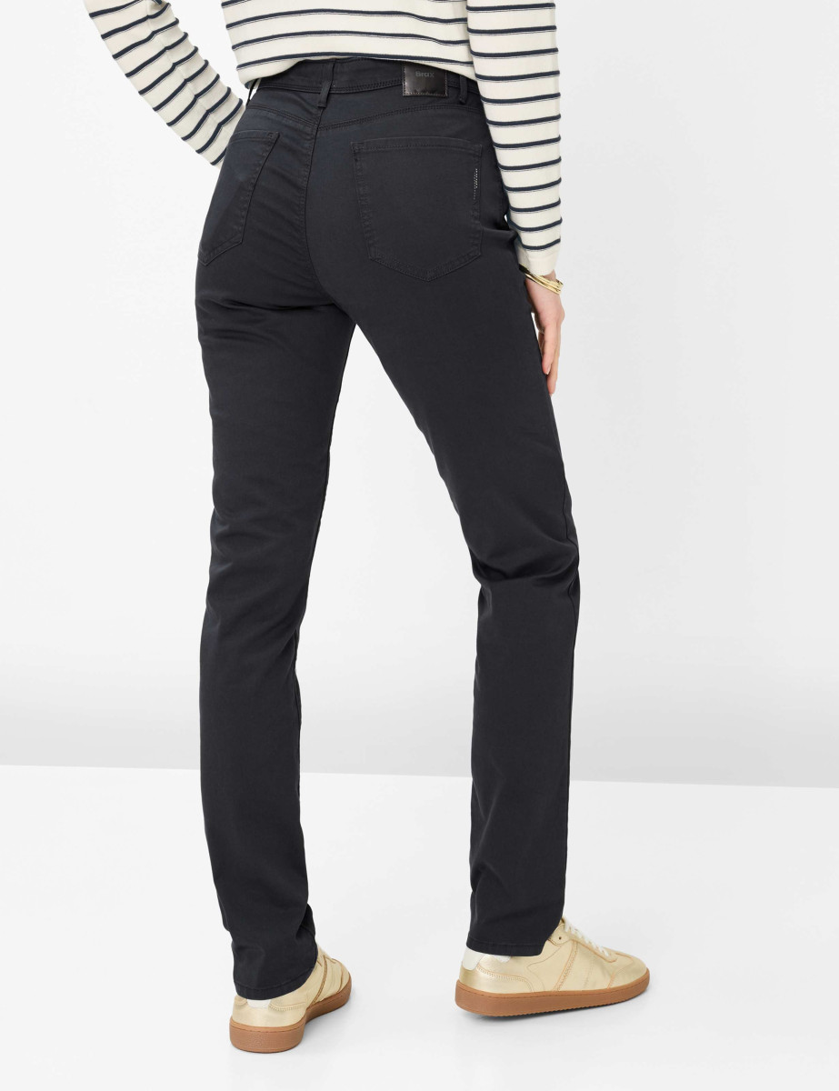 Mit ihrem klaren, modernen Auftreten zeigt sich die Five-Pocket-Hose im Style MARY als feminine Wahl für einen vielseitigen Alltag. Die gerade Form im Regular Fit sorgt für eine ausgewogene Linie, die schmeichelhaft wirkt und genügend Bewegungsfreiheit bietet. Typische Elemente der Five-Pocket-Gestaltung – Einschubtaschen, eine kleine Coinpocket sowie aufgesetzte Gesäßtaschen – verleihen der Hose ihren charakteristischen Look. Fein platzierte Strasselemente bereichern die cleane Optik mit eleganter Note. Edel wird es auch beim Material. Die Superior Cotton-Qualität verleiht der Hose einen feinen Glanz und eine geschmeidige Haptik. Der hochwertige Baumwoll-Mix sorgt für ein angenehm weiches Hautgefühl. Ergänzt durch Lyocell und Elasthan, bietet die farbbrillante Satin Atmungsaktivität, Formbeständigkeit und exzellente Bewegungsfreiheit – für unbeschwertes Wohlbefinden den ganzen Tag.