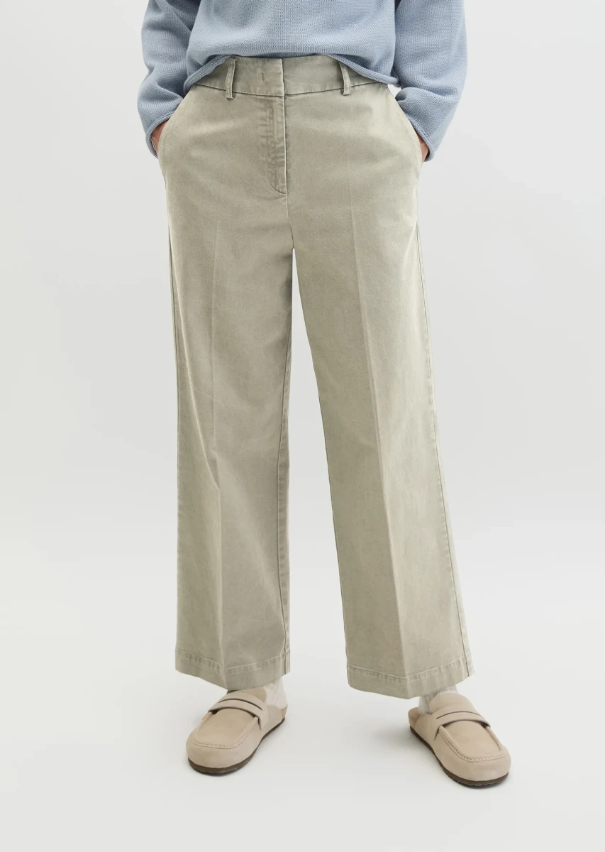 Die Hose Model Mea straight ist Teil einer Kollektion aus charakterstarken Fits, die zeitloses Design und langlebige Qualität mit besonderem Tragekomfort verbinden. Fits, die jede Saison funktionieren - verlässlich, klar, durchdacht - gefertigt aus Premium-Materialien und mit einem Auge für besondere Details. Die Hose hat einen modernen, geraden Schnitt mit hoher Taille, einem breiten Bund und eine lässig verkürzte Beinlänge. Sie verfügt über eine cleane Verarbeitung mit verdecktem Hakenverschluss, schräge Eingrifftaschen vorne und eine schmale Paspeltasche auf dem Gesäß. Das Material ist ein sanft gebürsteter Stretch-Twill aus einem hochwertigen Bio-Baumwoll-Mix.