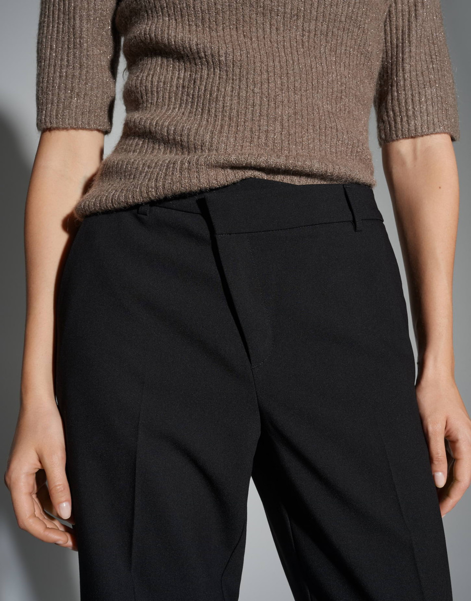 Seitliche oder schräge Eingrifftaschen unterstreichen die formelle Ästhetik. Durch ihre schlichte Farbgebung und das elegante Material ist diese Hose der perfekte Partner für Blusen, Blazer oder Feinstrick und eignet sich hervorragend für das Büro, formelle Anlässe oder gehobene Alltags-Looks.