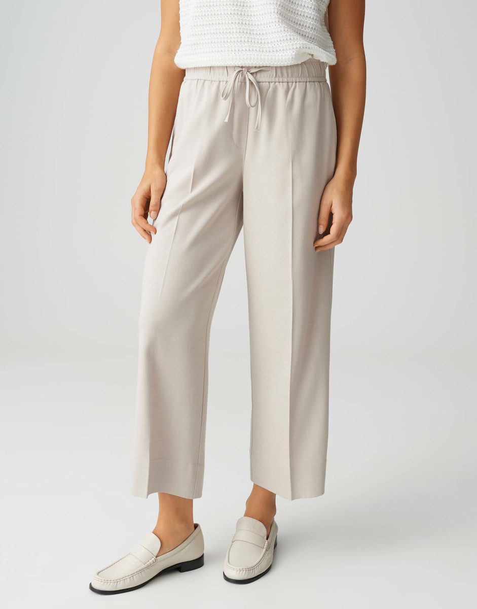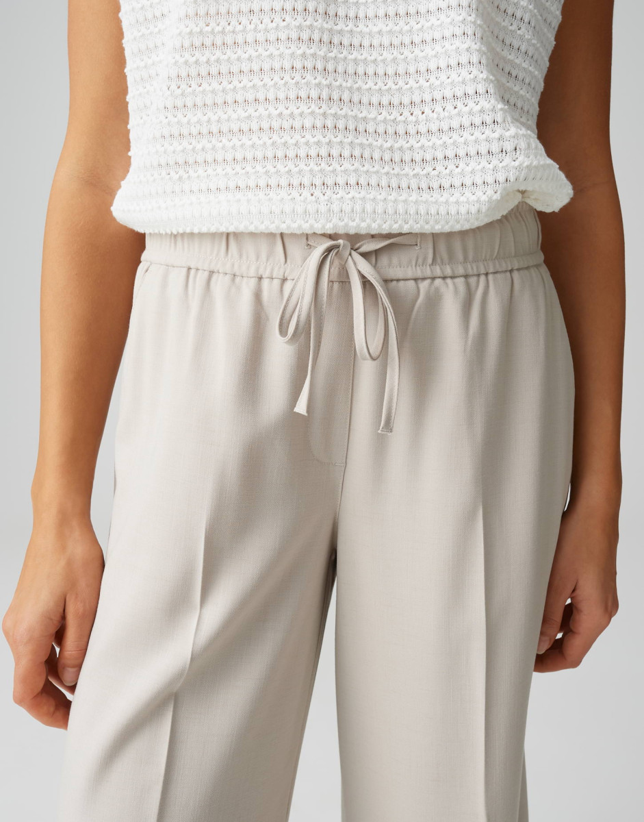 Damenhose mit weitem, geradem Beinverlauf und einem weichen, fließenden Fall – ideal für einen lässig-eleganten Look. Die Hose verfügt über schräge Eingrifftaschen, Zier-Paspeltaschen hinten und Bügelfalten, die für eine gepflegte Optik sorgen. Ein elastischer Gummibund mit Kordel sowie die pflegeleichte Webware machen sie besonders bequem und alltagstauglich.Lief.-Art-Nr: 10550814076106