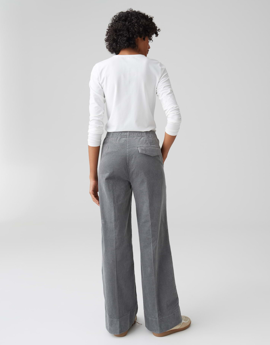 Diese weite Cordhose für Damen ist ein absolutes Must-have für Ihre Garderobe. Der moderne Wide-Leg-Schnitt sorgt für eine lässige und zugleich elegante Silhouette, die jedem Outfit eine besondere Note verleiht.