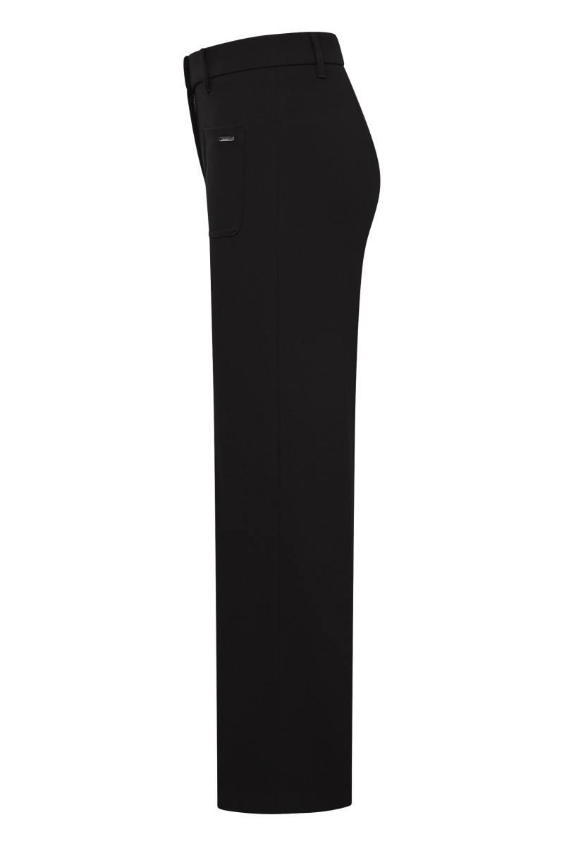 Modell: Mittlere Leibhöhe Gerades Bein Aufgesetzte Taschen Biese im Vorderteil Artikel: Edler Jersey im Business Look Hoher Tragekomfort da bi elastisch, knitterarm und formstabil Leibhöhe: 25.5 cm Fußweite: 52 cm Schrittlänge: 75 cm