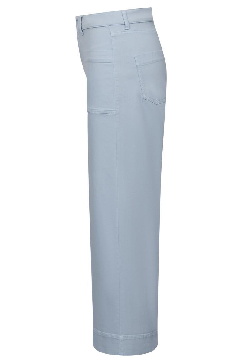 Modell: High Waist Style Weites, verkürztes Bein mit breitem Saum Aufgesetzte Taschen vorn und hinten Artikel: White Denim, sommerlich leicht Dank Lyocell Anteil Besonders weich und fließend Leibhöhe: 28 cm Fußweite: 58 cm Schrittlänge: 68 cm