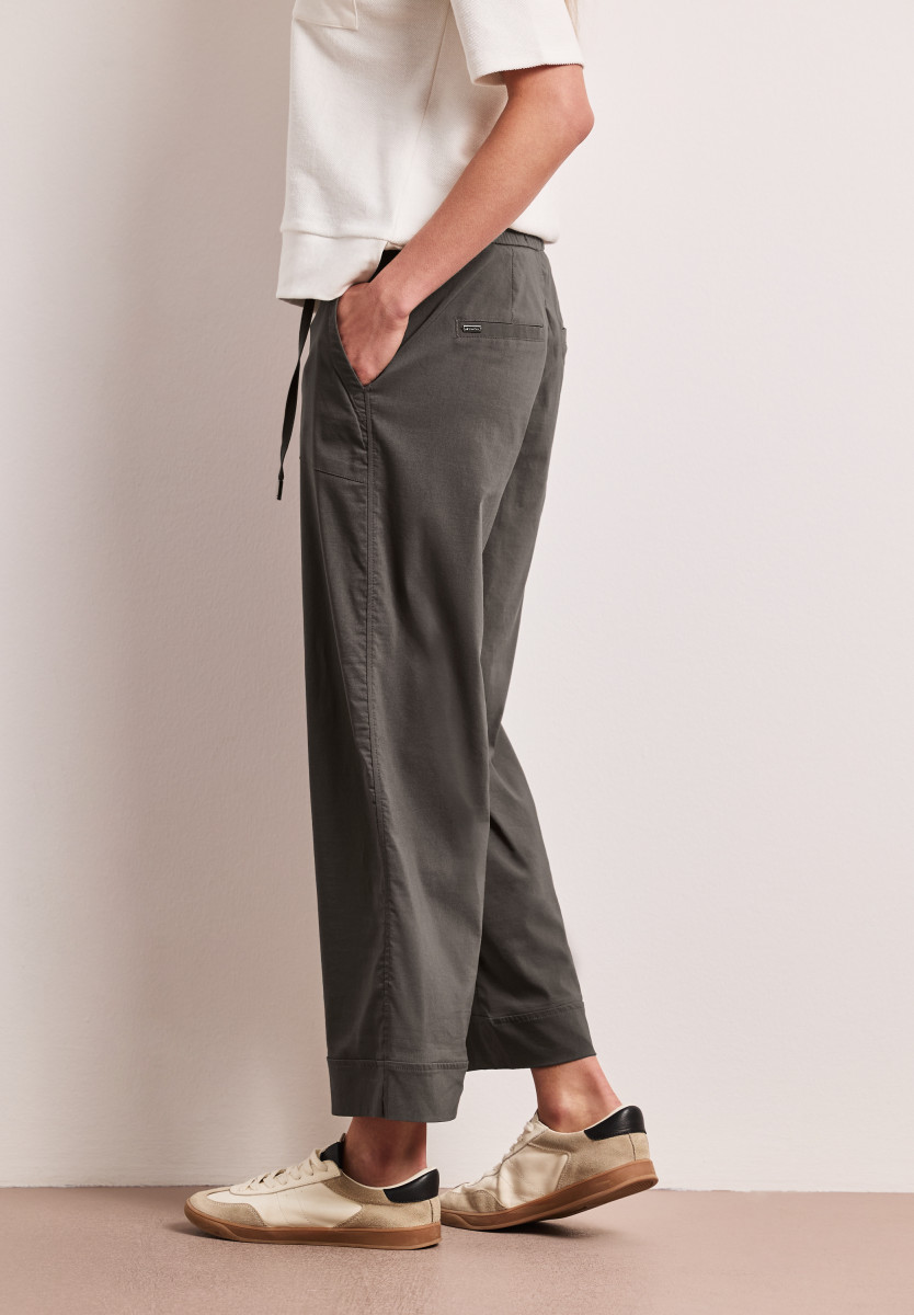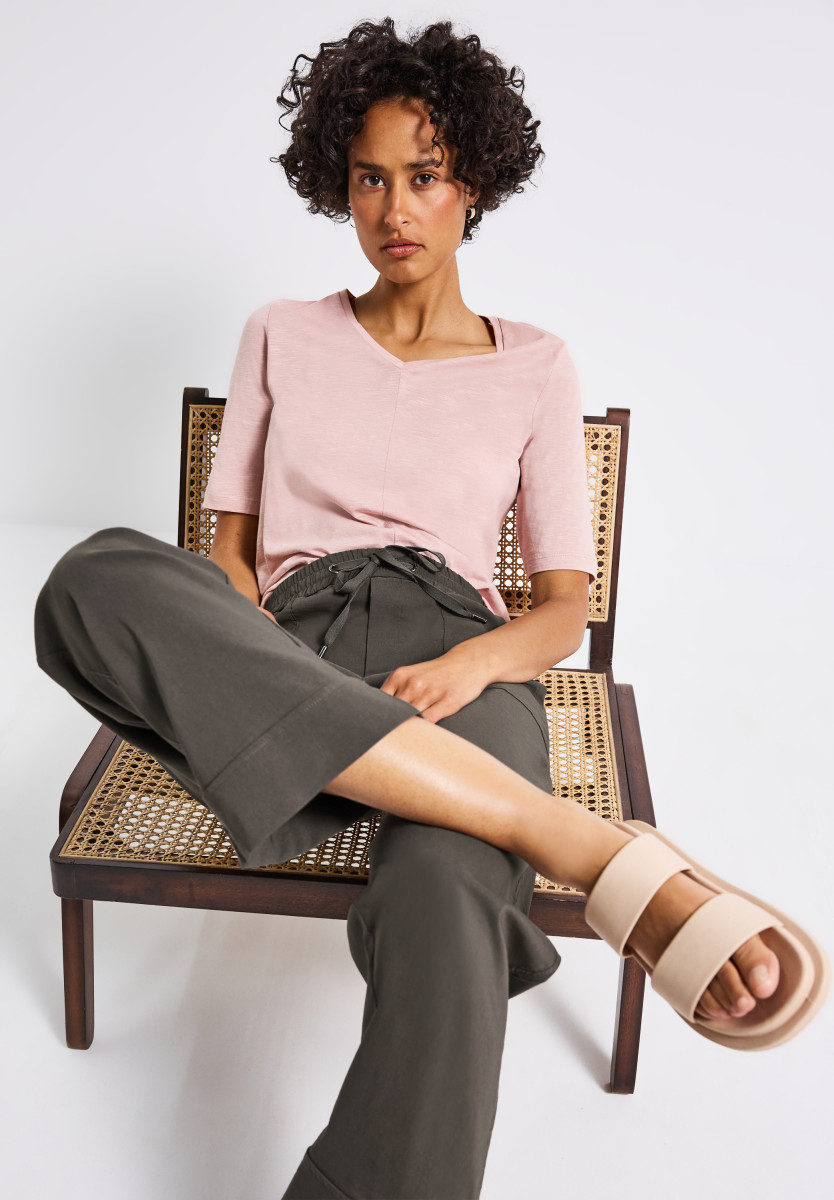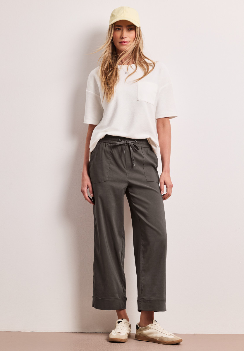Diese Hose von Street One für Damen überzeugt mit einem entspannten Casual Fit, einer High Waist und modischen Straight Legs mit Turn-Up-Detail. Der elastische Bund mit Tunnelzug sorgt für eine lässige Passform. Der Baumwollmix mit Stretchanteil trägt sich angenehm und macht die Hose zum bequemen Allrounder für den Alltag. Damenhose High Waist und Straight Legs Seitliche Taschen Elastischer Bund mit Tunnelzug Baumwollmix mit Stretchanteil Material: 66% Baumwolle, 30% Polyester, 4% Elasthan