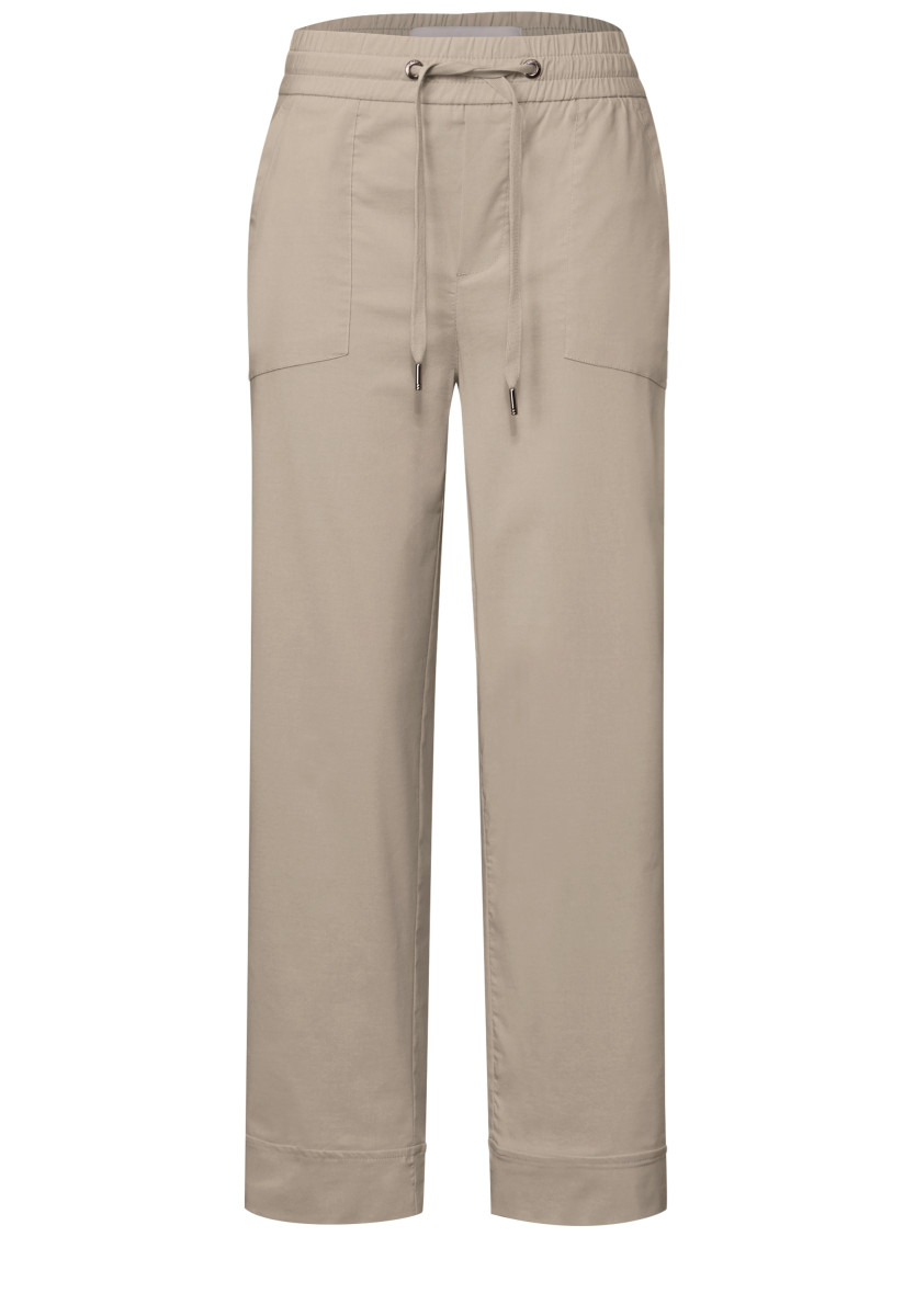 Diese Hose von Street One für Damen überzeugt mit einem entspannten Casual Fit, einer High Waist und modischen Straight Legs mit Turn-Up-Detail. Der elastische Bund mit Tunnelzug sorgt für eine lässige Passform. Der Baumwollmix mit Stretchanteil trägt sich angenehm und macht die Hose zum bequemen Allrounder für den Alltag. Damenhose High Waist und Straight Legs Seitliche Taschen Elastischer Bund mit Tunnelzug Baumwollmix mit Stretchanteil Material: 66% Baumwolle, 30% Polyester, 4% Elasthan