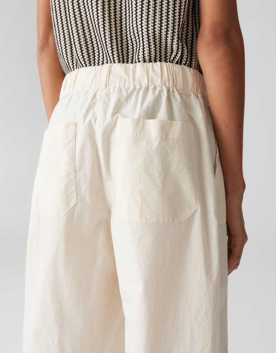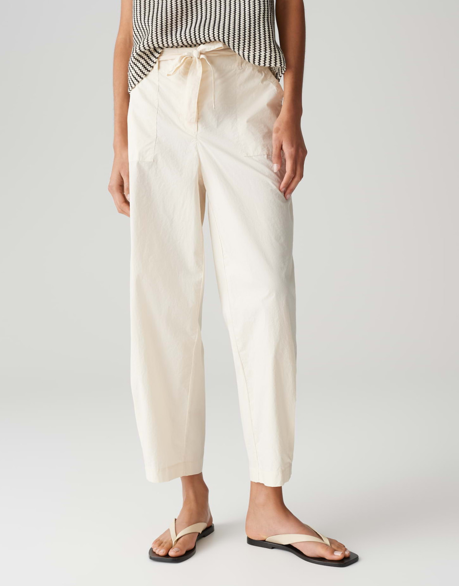 Der leichte Stoff mit einer dezente Struktur bietet nicht nur eine angenehme Optik, sondern ist auch atmungsaktiv und daher perfekt für wärmeres Wetter. Der elastische Komfortbund hinten sorgt für einen hohen Tragekomfort und ein gutes Gefühl den ganzen Tag über. Das Bindeband und die Gürtelschlaufen ermöglichen zusätzliche Anpassungen und bieten verschiedene Tragemöglichkeiten.