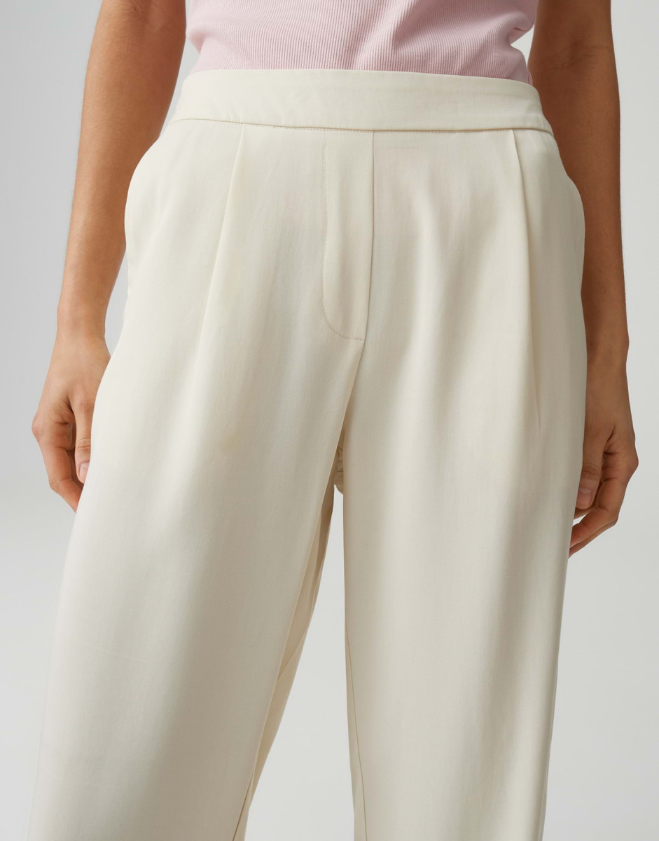 Die sommerliche Neuinterpretation von MYHA setzt auf eine weich fließende Tencelqualität, die für ein angenehm kühles Tragegefühl sorgt. Mit ihrem dezenten Faltendetail am Saum und dem entspannten Relaxed Fit verbindet sie Trend mit Bewegungsfreiheit und bleibt dank elastischem Bund vom Morgenmeeting bis zum Afterwork Termin komfortabel kombinierbar.