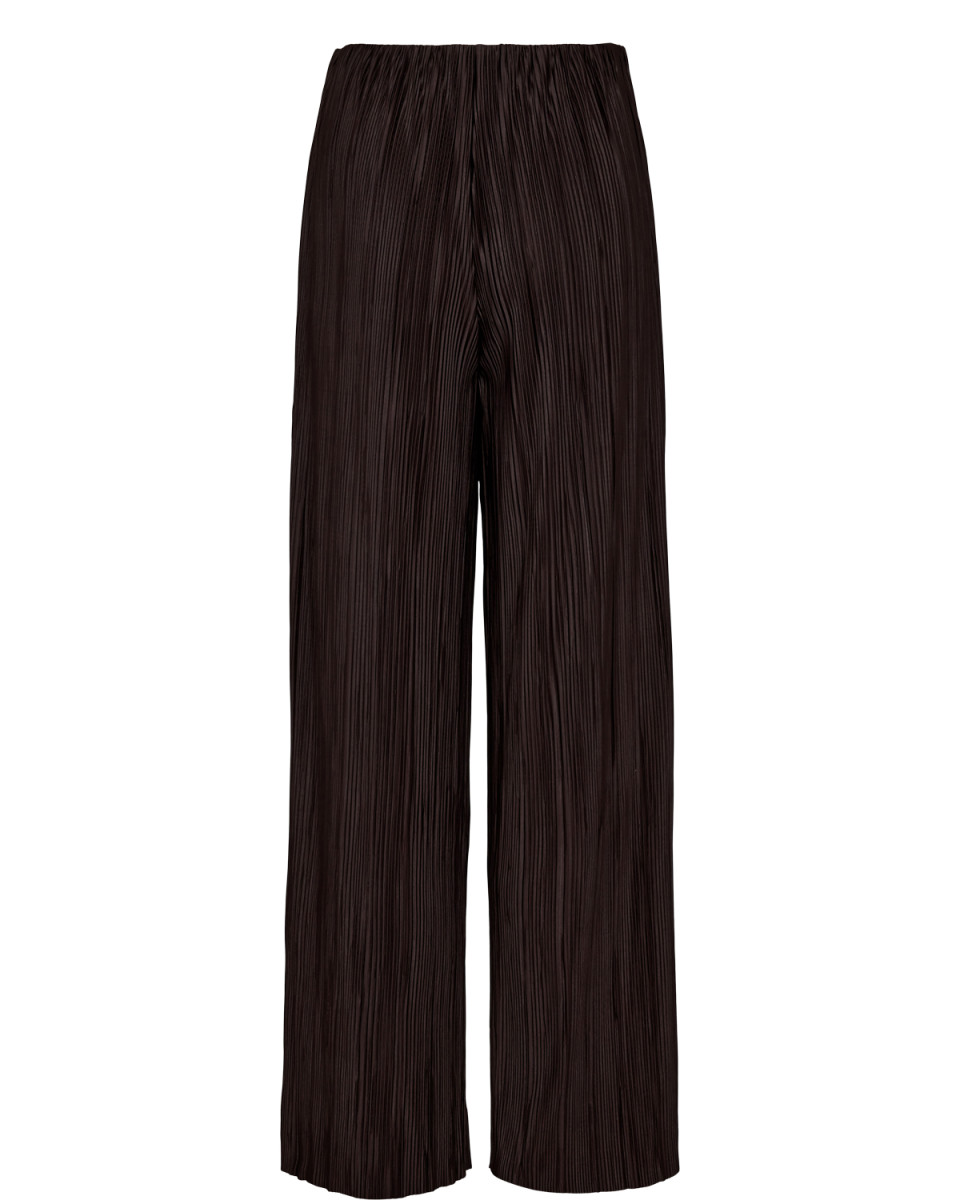 Diese stilvolle Hose in tiefem Schwarz überzeugt durch ihr plissiertes Design und einen fließenden, luftigen Fall. Der weite Beinverlauf sorgt für maximale Bewegungsfreiheit und eine elegante Silhouette – perfekt für Büro, Freizeit oder besondere Anlässe.