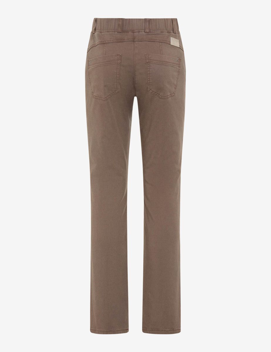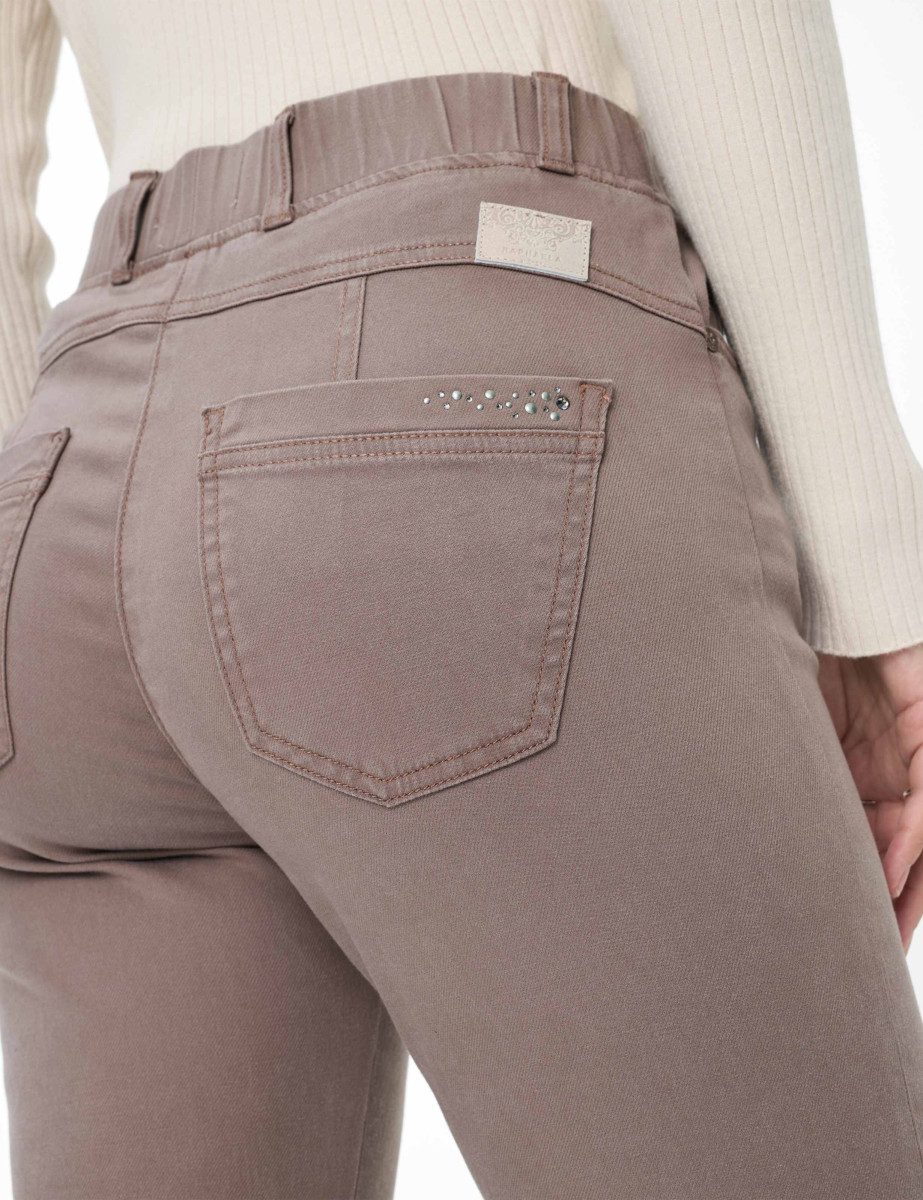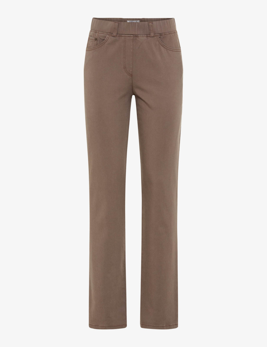 Diese braune Damenhose mit elastischem Bund überzeugt durch ihre komfortable Passform und ihr cleanes, vielseitiges Design. Der gerade Schnitt und der angenehme Stretchanteil sorgen für optimale Bewegungsfreiheit – perfekt für Alltag, Freizeit oder Büro.