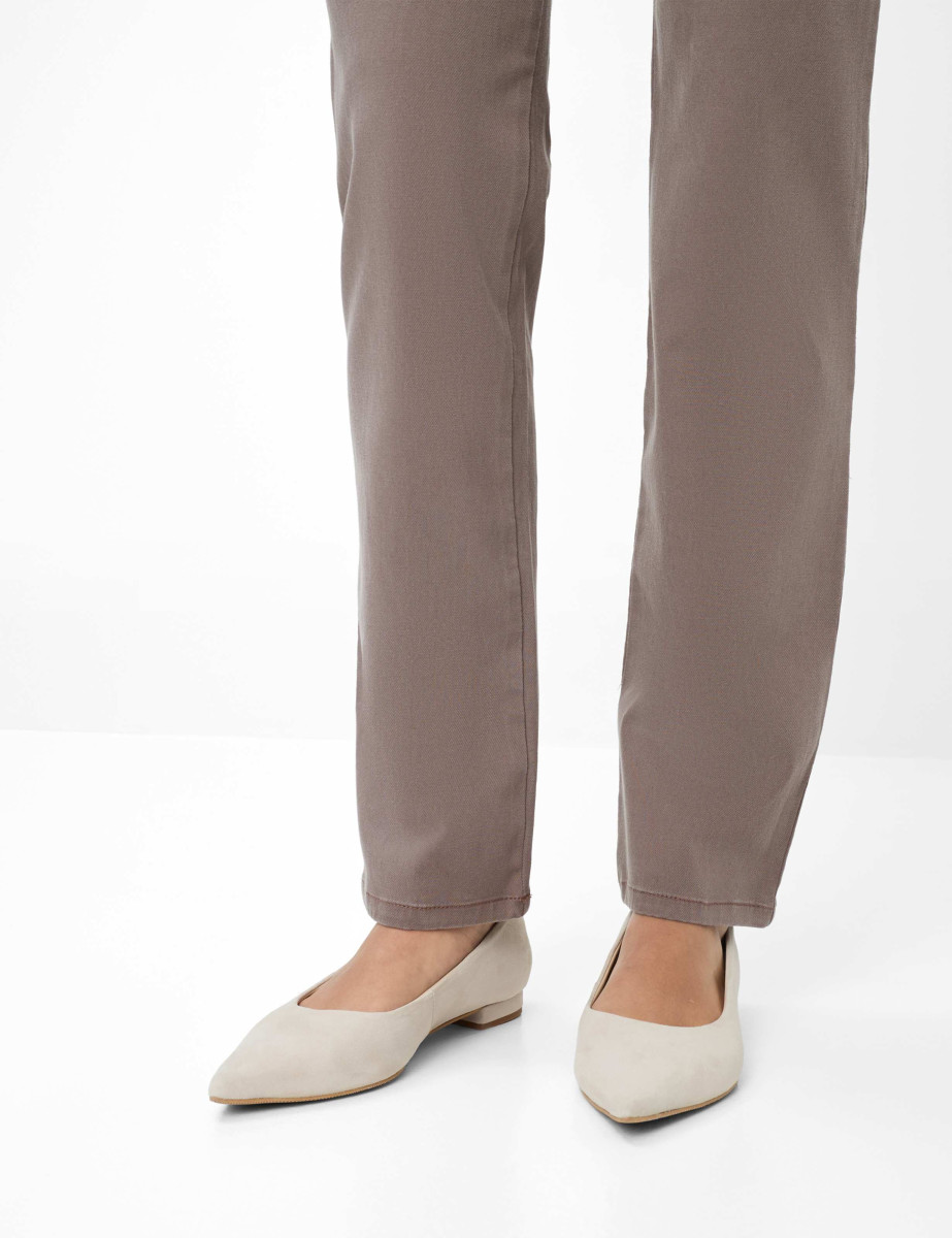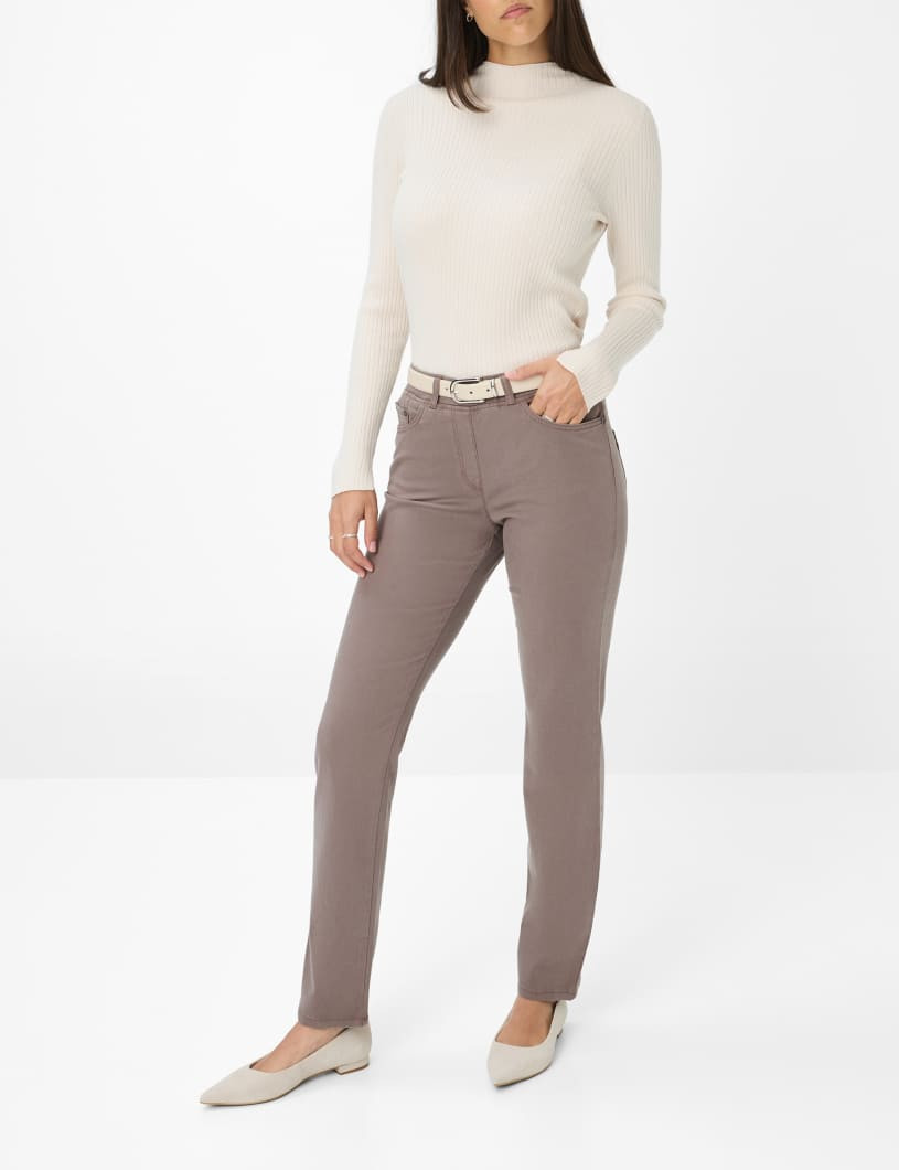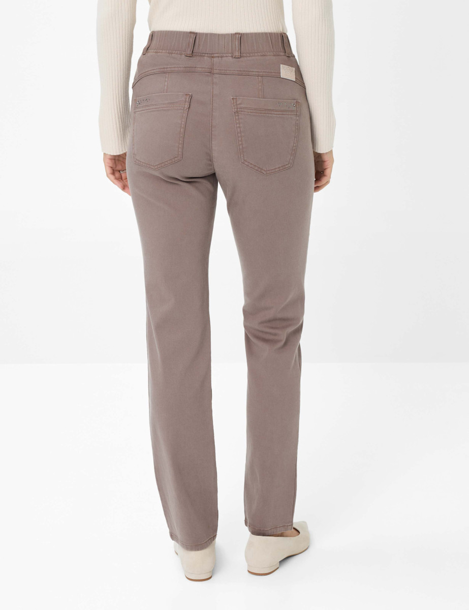 Diese braune Damenhose mit elastischem Bund überzeugt durch ihre komfortable Passform und ihr cleanes, vielseitiges Design. Der gerade Schnitt und der angenehme Stretchanteil sorgen für optimale Bewegungsfreiheit – perfekt für Alltag, Freizeit oder Büro.