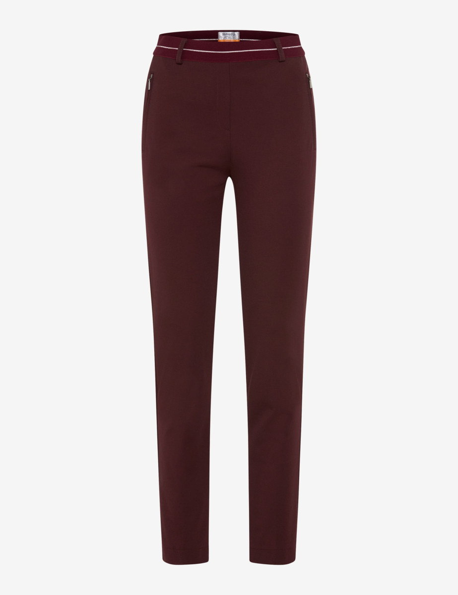 Ein Klassiker für Damen ist der Style LILLYTH von Raphaela. Zeitgemäß und bequem kreieren Sie mit der verkürzten Schlupfhose eine Vielfalt an smarten Looks. Die Super Slim Fit Damenhose mit hoher Taille betont dank der superschlanken Passform Ihre Beine. Unkompliziert ergänzt mit Fake-Verschluss - einfach reinschlüpfen und gut aussehen. Durch die Reißverschlusstaschen erhält die Hose eine sportive Note. Zusätzlich ist sie mit feinem Bügelbruch aufgemacht. Durch eine glatte Oberfläche und eine geschmeidige Haptik zeichnet sich der fein gewirkte Jersey aus. Bei dieser Schlupfhose bietet der fließende und hautfreundliche Viskosemix außerdem ein hervorragendes Tragegefühl.