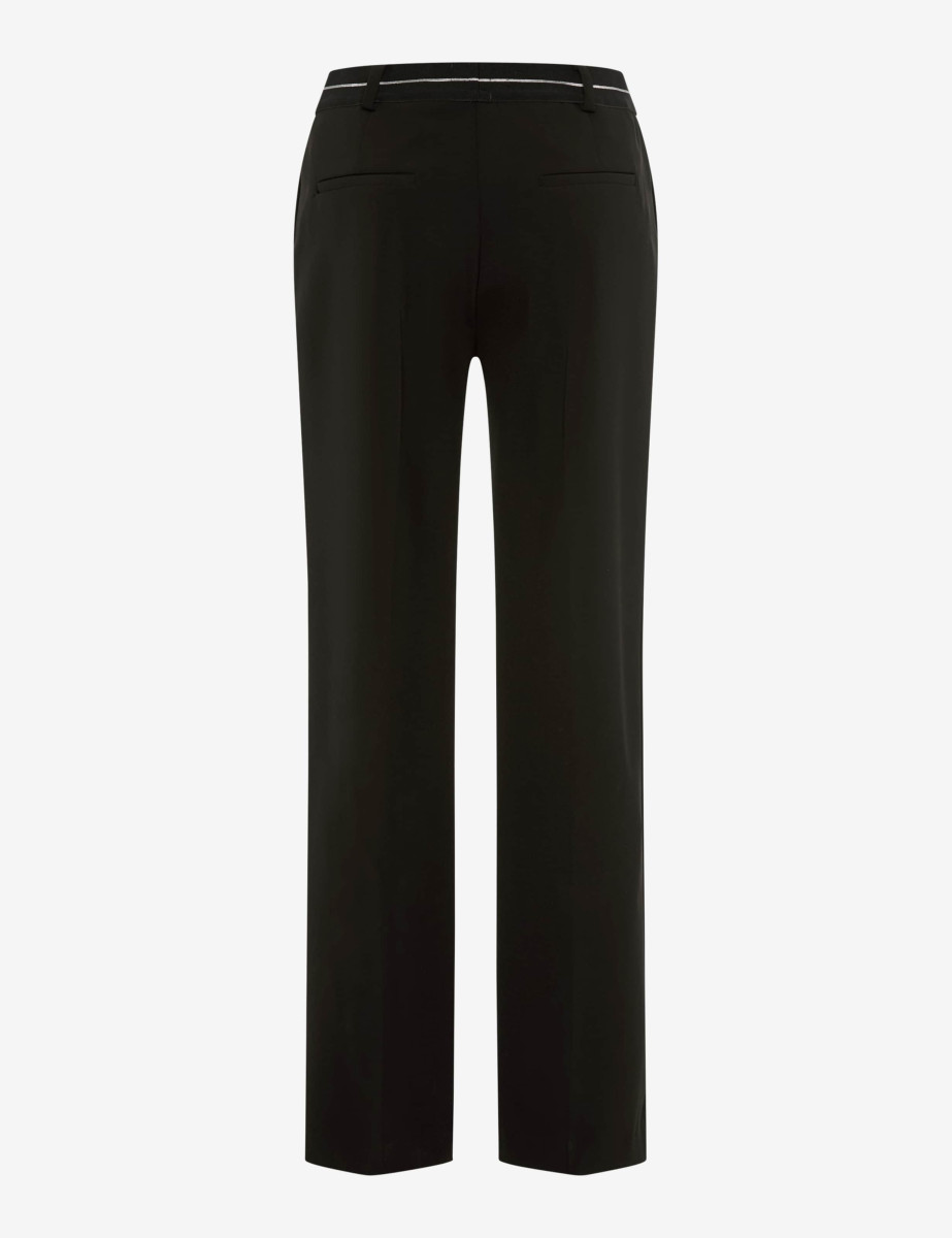 Diese Hose präsentiert sich in einem klassischen, zeitlosen Design, das sich mühelos in jede Garderobeneinfügt. Der Schnitt ist auf eine elegante Silhouette ausgelegt, mit einem geraden Beinverlauf, der die Figur vorteilhaft streckt. Der dezente Bund am oberen Abschluss des Hosenbunds setzt einen feinen Akzent. Durch die glatte Materialstruktur und die klare Linienführung eignet sich dieses Modell hervorragend sowohl für formelle Anlässe als auch für einen stilvollen Auftritt im Alltag. Die hochwertige Verarbeitung garantiert einen angenehmen Tragekomfort und eine optimale Passform. Diese Hose ist ein vielseitiges Basic, das sich hervorragend kombinieren lässt und in keiner Damengarderobe fehlen sollte.