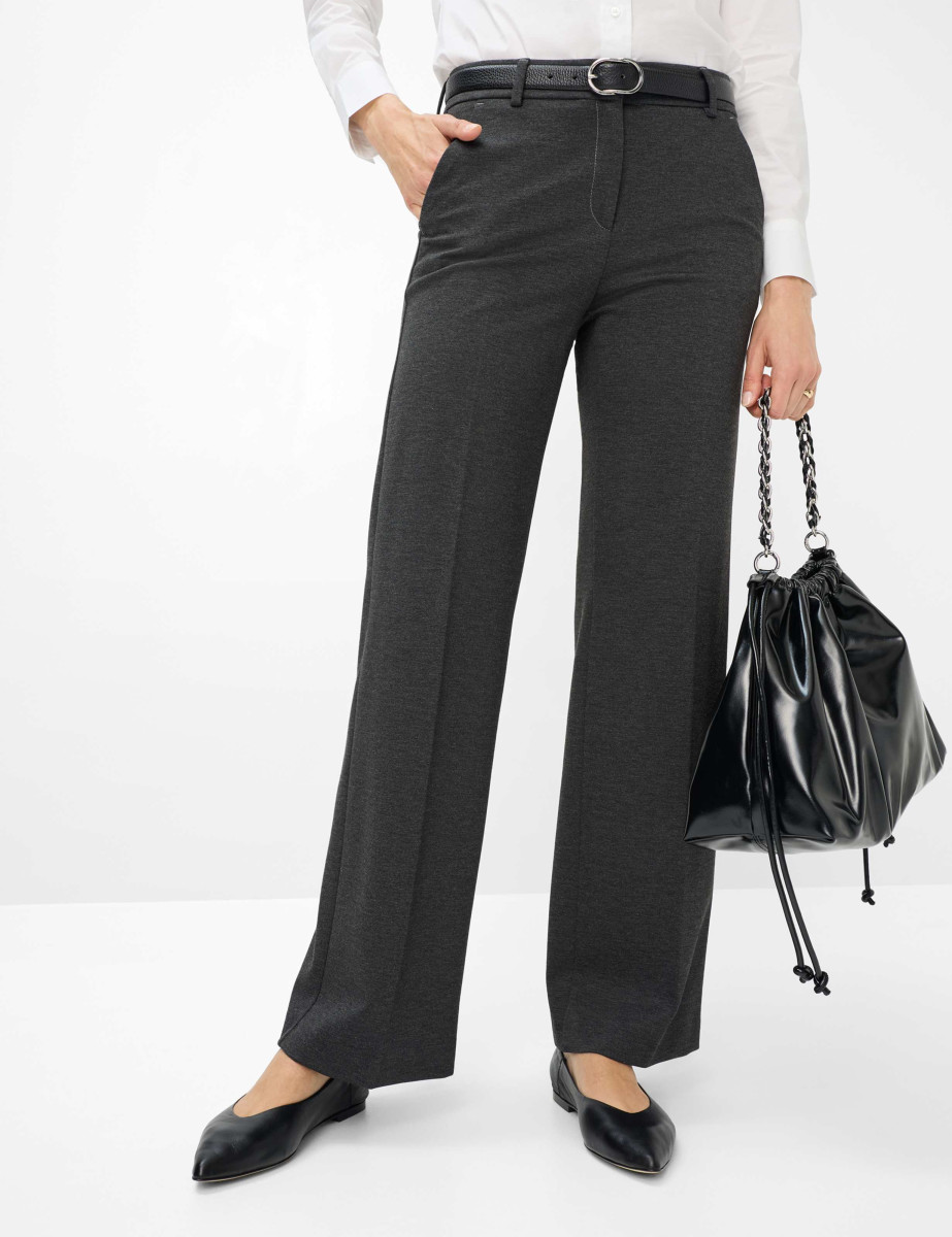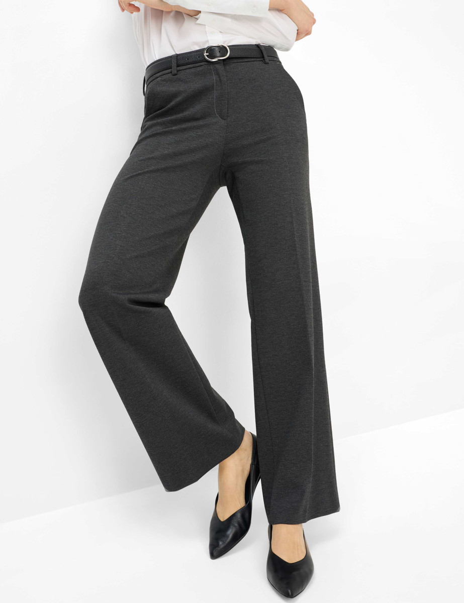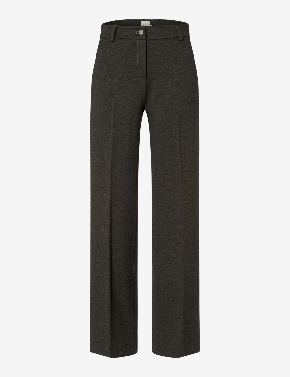 Mit ihrer entspannten Eleganz ist die Palazzohose im STYLE MAINE eine ideale Wahl für stilbewusste Frauen, die den Herbst in vollen Zügen genießen möchten. Die gerade, weit geschnittene Silhouette der Hose im Wide Leg kombiniert zeitlose Klasse mit modernem Komfort. Die normale Leibhöhe und die durchdachten Details wie französische Taschen und eine Leistengesäßtasche unterstreichen ihr hochwertiges Erscheinungsbild. Auch der Bügelbruch verstärkt diese elegante Optik. Die Finest Jersey-Qualität, bekannt für eine geschmeidige Textur und elastische Qualität, sorgt für ein unvergleichlich angenehmes Tragegefühl und macht die Damenhose zu einem vielseitigen Begleiter. Der softe Viskosemix bietet sowohl exzellente Formstabilität als auch Farbbrillanz. Fazit: Mit dieser Hose finden Sie die perfekte Mischung aus Komfort und Stil.