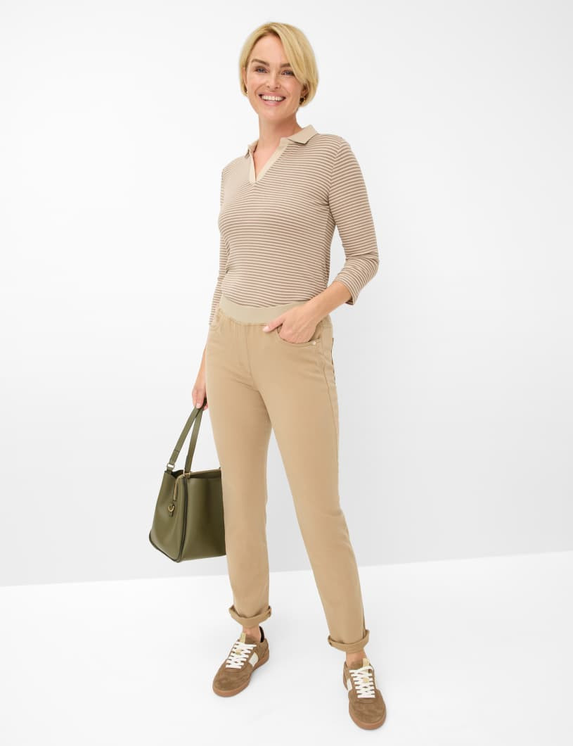 Eintauchen in die kühle Jahreszeit wird mit der Schlupfhose im Modell PAMINA zu einem stilvollen Vergnügen. Diese klassisch-moderne Hose vereint zeitlose Eleganz mit einem Hauch von Raffinesse, der durch ihre schlanke Silhouette und den figurnahen Slim Fit perfekt in Szene gesetzt wird. Der praktische Schlupf-Verschluss sorgt dabei für ein unkompliziertes Anziehen, während die hohe Leibhöhe Ihre Figur vorteilhaft betont. Aufgesetzte Gesäßtaschen verleihen dem Design eine lässige Note und bieten zugleich eine funktionale Ergänzung. Dezente Swarovski-Elemente setzen zarte, glänzende Akzente und runden das Gesamtbild mit einer Prise Glamour ab. Gefertigt aus einem hochwertigen Materialmix aus Lyocell, Baumwolle und Elasthan, bietet diese Hose nicht nur eine angenehme Haptik, sondern auch exzellenten Tragekomfort. Lyocell sorgt für eine glatte, seidige Oberfläche und eine optimale Feuchtigkeitsregulierung, während Baumwolle für Atmungsaktivität und Weichheit steht. Der Elasthan-Anteil garantiert eine hohe Flexibilität, die zusammen mit dem schlanken Schnitt für eine perfekte Passform sorgt. Diese Kombination macht die Hose zu einem idealen Begleiter für jede Gelegenheit, sei es im Büro oder bei einem entspannten Spaziergang. Mit ihrer stilvollen Ausstrahlung und dem unvergleichlichen Komfort ist sie ein Must-have, das Ihre Garderobe bereichern wird.