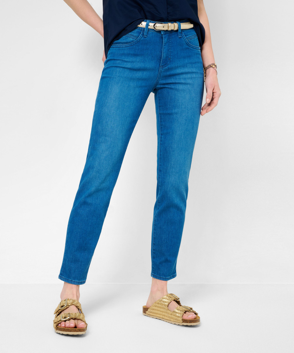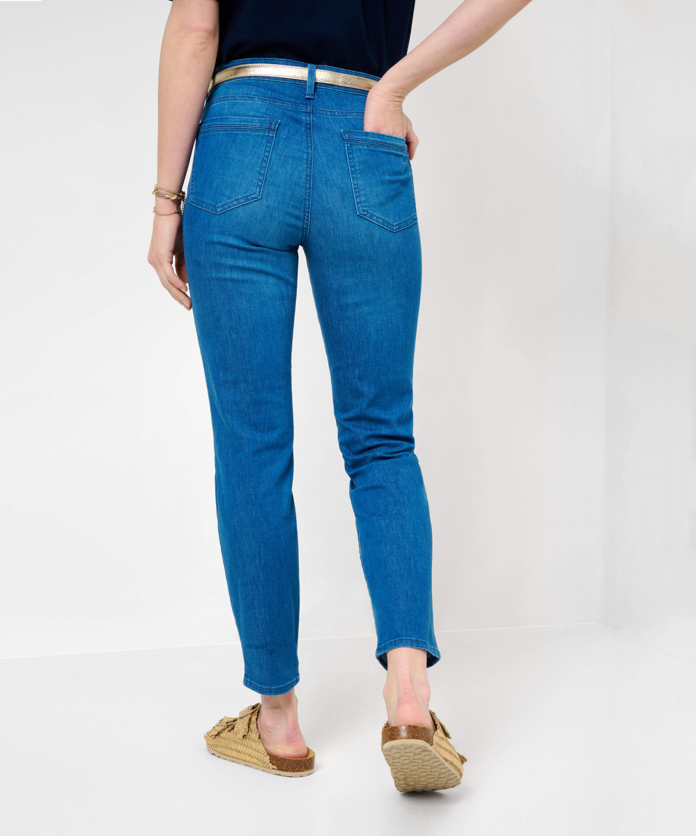 Für Damen ist der Style SHAKIRA S ein Essential. Denn in jeder Kombination gelingt mit dieser zeitlosen 7/8 Five-Pocket-Jeans ein stilsicherer Look. Die Slim Fit Damenhose überzeugt mit schlankem Beinverlauf und regulärer Taille. Durch die Nahttasche erhält die Hose eine typische Note. Sie ist zusätzlich mit dezenten Teilungsnähten gefertigt. Die extrem elastische Free to Move-Qualität garantiert Ihnen uneingeschränkte Bewegungsfreiheit mit optimalem Dehn- und Rücksprungsverhältnis. Für einzigartige Authentizität steht darüber hinaus der Denim und vereint das charakteristische Warenbild mit hoher Strapazierfähigkeit. Bei dieser Five-Pocket-Jeans bietet der nachhaltige, unempfindliche und hautfreundliche Baumwollmix außerdem ein angenehmes Tragegefühl.Form: * Five-Pocket-Jeans * Damenjeans * Einschubtaschen vorn * Aufgesetzte Gesäßtaschen * Verdeckter Reißverschluss * Normale Leibhöhe * Schlanke Silhouette * Gerade Silhouette * Extra schmale Fußweite Material: * Blue Planet * Free to Move: Super Stretch-Denim * Baumwolle: hautsympathisch, atmungsaktiv, strapazierfähig * Viskose: weicher Griff, geschmeidiger Fall, Leuchtkraft * Polyester: formbeständig, strapazierfähig, pflegeleicht * Elasthan: hochelastische Faser, sorgt für mehr Bewegungsfreiheit * Farb- und formbeständig * Hervorragende Stretcheigenschaften * Softe Haptik Details/Verarbeitung: * Unifarben * Dezente Used-Optik * Teilungsnähte * Modernes Label Maße: * Beininnenlänge bei Größe 38 (Inch 29): 70 cm * Fußweite bei Größe 38 (Inch 29): 28 cm * Gewicht m²: 300 g * Unser Model trägt Größe 36 (Inch 27) und ist 177 cm groß