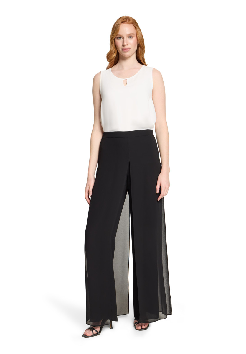 Der Hosenrock vereint die Optik eines Rocks mit dem Komfort einer Hose und zeichnet sich durch eine gerade Passform sowie eine lange High-Waist-Silhouette aus. Die chiffongleiche Optik sorgt für fließenden Fall und eine feminine Ausstrahlung, während ein verdeckter Reißverschluss für einen sauberen Abschluss sorgt. Das unifarbene Design ohne Taschen macht das Modell vielseitig kombinierbar für elegante oder gepflegte Alltagslooks.Lief.-Art-Nr: 03984825