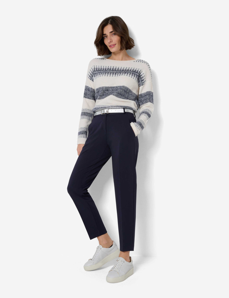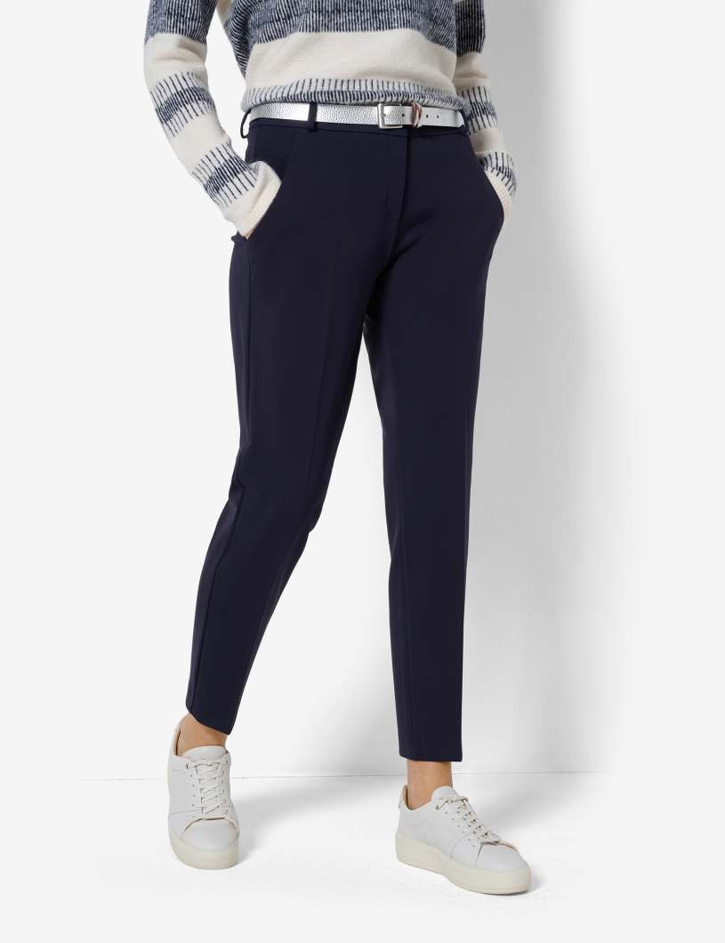 Für Damen ist der Style MARON S ein Klassiker. In Kombination mit Blusen vervollständigt die zeitlose 7/8 Chino einen gepflegten Look. Die Regular Fit Damenhose sorgt mit konischem Schnitt und regulärer Taille für eine komfortable Passform. Durch das aufwendige Taschendesign erhält die Hose eine bewährte Note.
