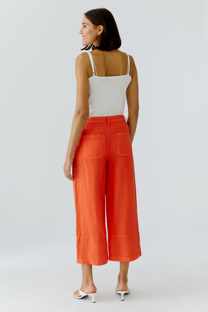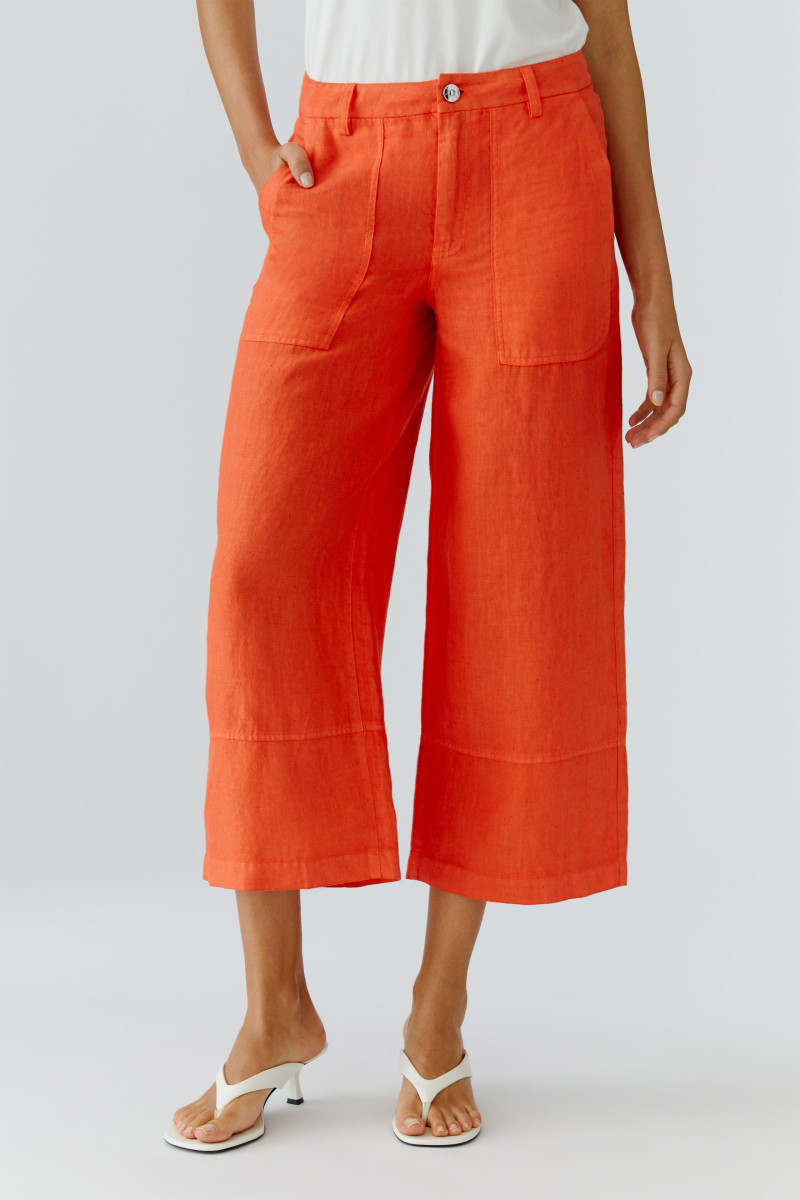 Leicht verkürzte, gerade geschnittene Hose aus reinem Leinen, die sich vielseitig kombinieren lässt. Sie ist mit Gürtelschlaufen, einer Reißverschlussleiste und großzügigen aufgesetzten Taschen vorne sowie Gesäßtaschen ausgestattet. Eine sichtbare Absteppung am Saum setzt ein dezentes Detail und unterstreicht die sorgfältige Verarbeitung.Lief.-Art-Nr: 0097141
