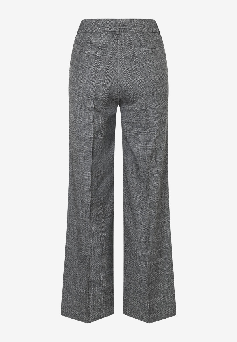 Gerader Shape mit weitem Bein und Bügelfalte | Hohe Leibhöhe | Verdeckter Frontverschluss und Bund mit Gürtelschlaufen | Schräge Eingrifftaschen | Angenehm stretchig