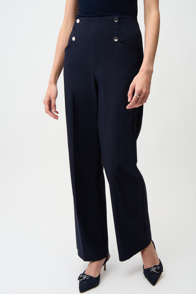 Diese elegante und vielseitige Millennium-Hose zum Hineinschlüpfen hat einen verdeckten elastischen Bund, eine weite Beinform und Vordertaschen mit Knopfakzent.