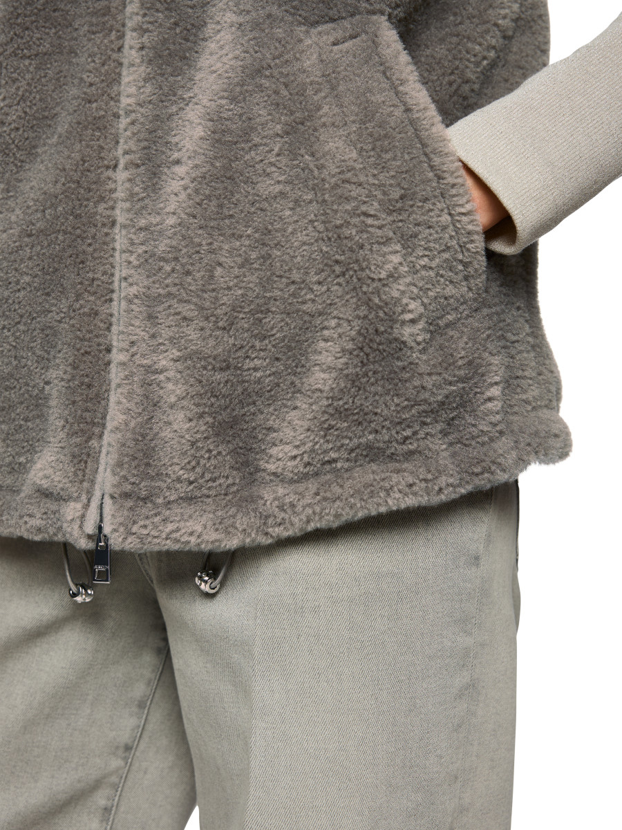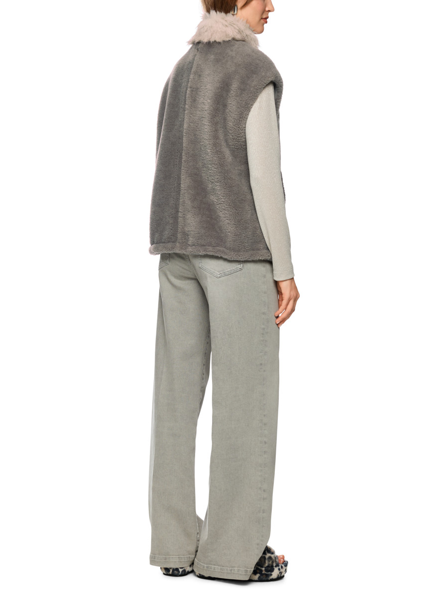 Diese kuschelige Weste mit langhaarigem Fake Fur Kragen sorgt für stilvolle Wärme an kalten Tagen. Der Kragen ist innen weich gefüttert mit Wolle. Überschnittene Schultern und praktische Eingrifftaschen runden das Design ab. Der Zwei-Wege-Reißverschluss sorgt für Flexibilität. Ideal für den modernen Layer-Look.