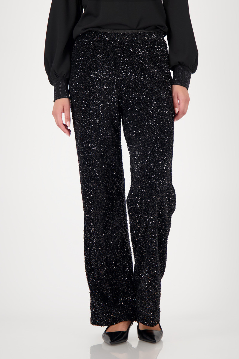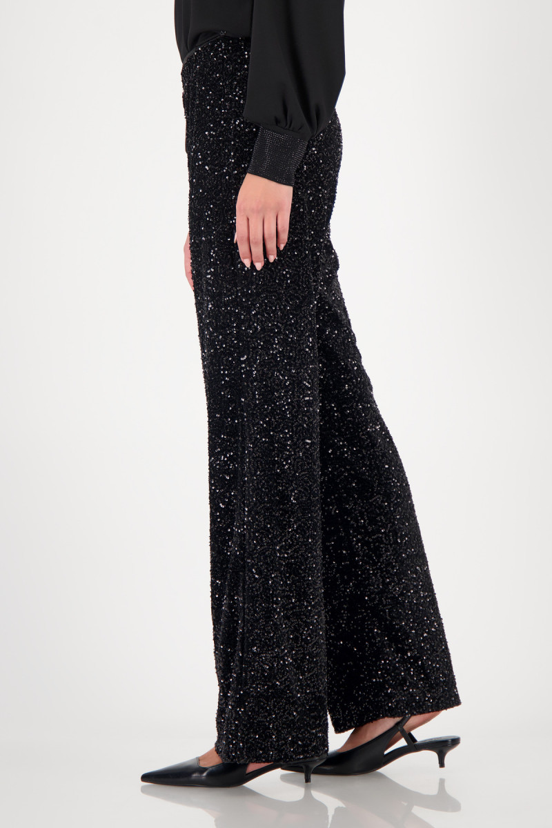Elegante Wide-Leg-Hose mit schimmernden Pailletten und elastischem Bund – für einen atemberaubenden Auftritt bei einem besonderen Anlass.