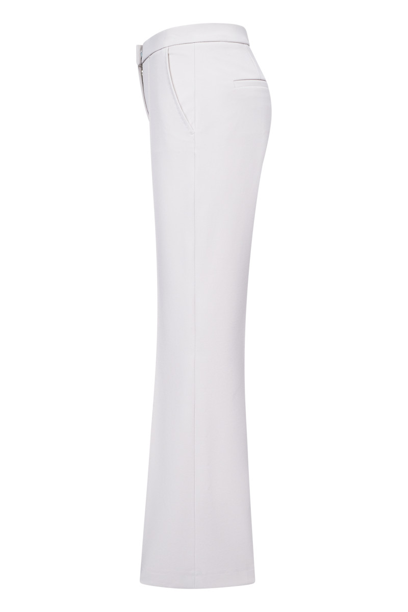 Modell: Mittlere Leibhöhe Flared Schräge Eingriffstaschen Imitierte Leistentaschen Gesteppte Biese vorne Artikel: Softe Stretchware mit glatter Oberfläche und hohem Viskoseanteil Bi-elastisch für angenehmen Tragekomfort Leibhöhe: 25.5 cm Fußweite: 60 cm Schrittlänge: 83 cm