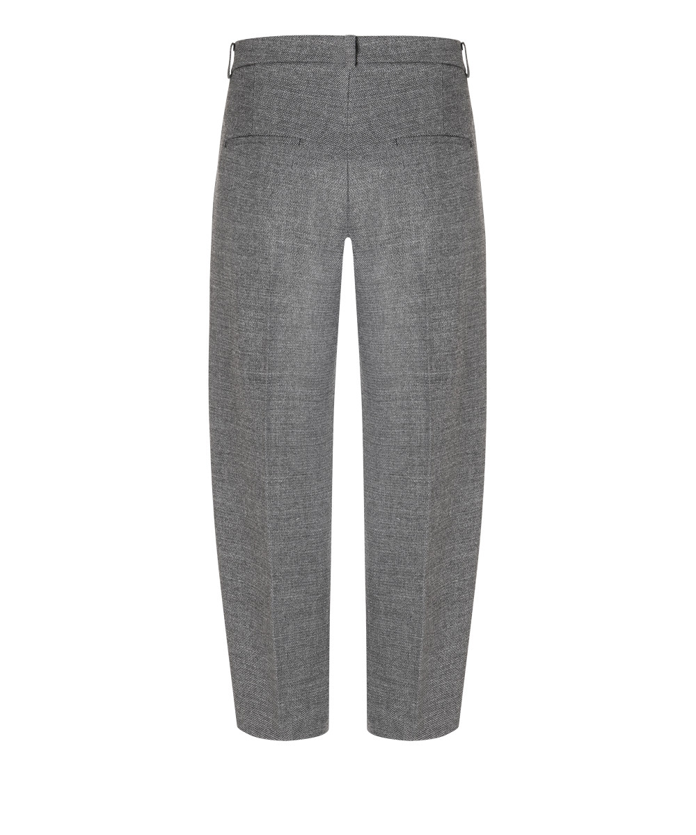 Diese graue Stoffhose von CAMBIO steht für stilvolle Eleganz und hochwertige Verarbeitung. Mit ihrer geraden Passform, den klassischen Bügelfalten und dem dezenten Muster ist sie ein vielseitiger Allrounder für Business, Büro oder besondere Anlässe. Der mittelhohe Bund mit Gürtelschlaufen sorgt für einen perfekten Sitz und lässt sich individuell stylen – ob mit Bluse, Blazer oder Strickpullover.