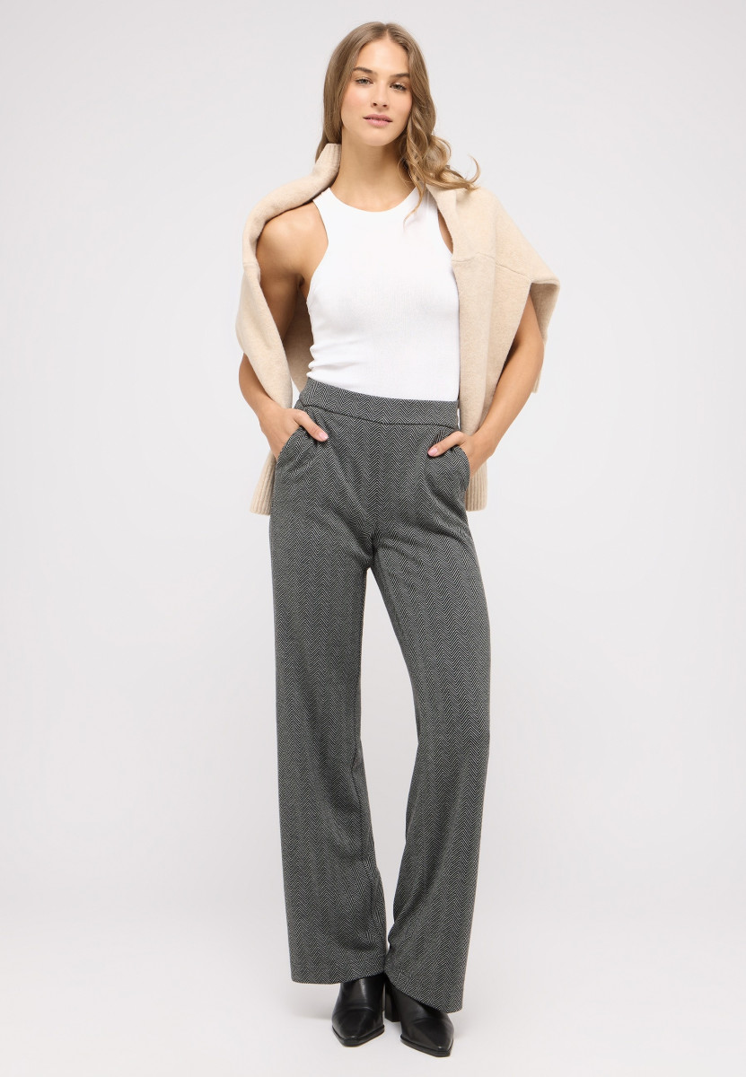 Komfort trifft auf Eleganz: Die Hose Liz im Relaxed Fit mit weitem Bein begeistert mit dehnbarem, flexiblem Stoff und einem bequemen Gummibund. Stilvolle Paspeltaschen runden das Design ab und machen sie zum perfekten Begleiter für entspannte, aber gepflegte Looks.