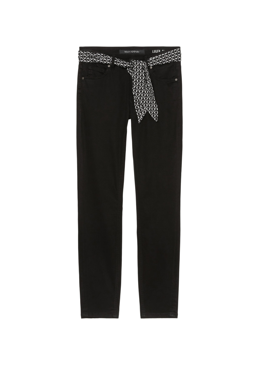 Marc O'Polo Damen Hose Lulea Slim aus softem, elastischem Lyocell-Baumwoll-Mix in lässiger, farbiger Waschung normale Leibhöhe in klassischem 5-Pocket-Stil verkürzte Beine klassischer Frontzipper in Metall und farblich passenden Nähten die Hose kommt zusammen mit einem Tuchgürtel
