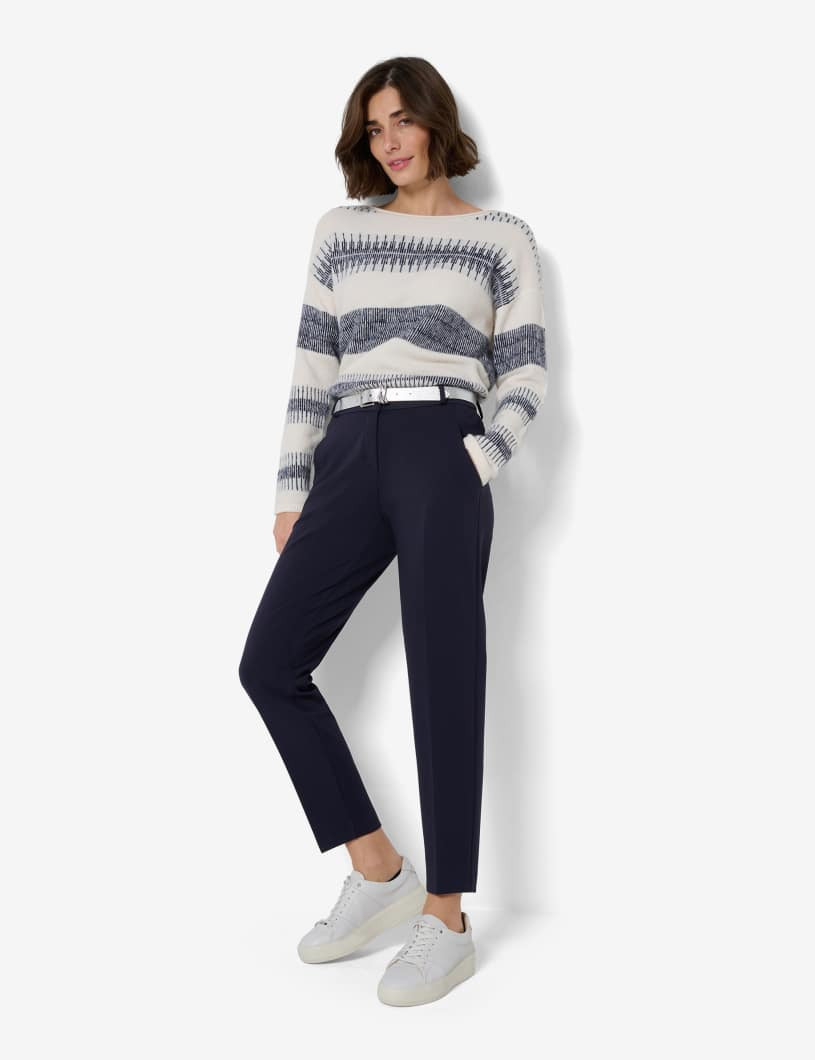 Für Damen ist der Style MARON S ein Basic. In Kombination mit sommerlichem Strick und flachen Schuhen komplettiert die zeitlose 7/8 Chino legere Outfits ideal. Die Regular Fit Damenhose sorgt mit konischem Schnitt und niedriger Taille für eine komfortable Passform. Durch die Reißverschlusstaschen erhält die Hose eine klassische Note. Zusätzlich ist sie mit Biese und Teilungsnähten ausgestattet. Definitiv gut gerüstet sind Sie mit dieser Techno-Qualität. Der spezielle Oberstoff verbindet exzellente Eigenschaften und solide Detailkomponenten zu einem Produkt mit Mehrwert. Bei dieser Chino bietet der formbeständige und innovative Polyamidmix außerdem ein hervorragendes Tragegefühl.
