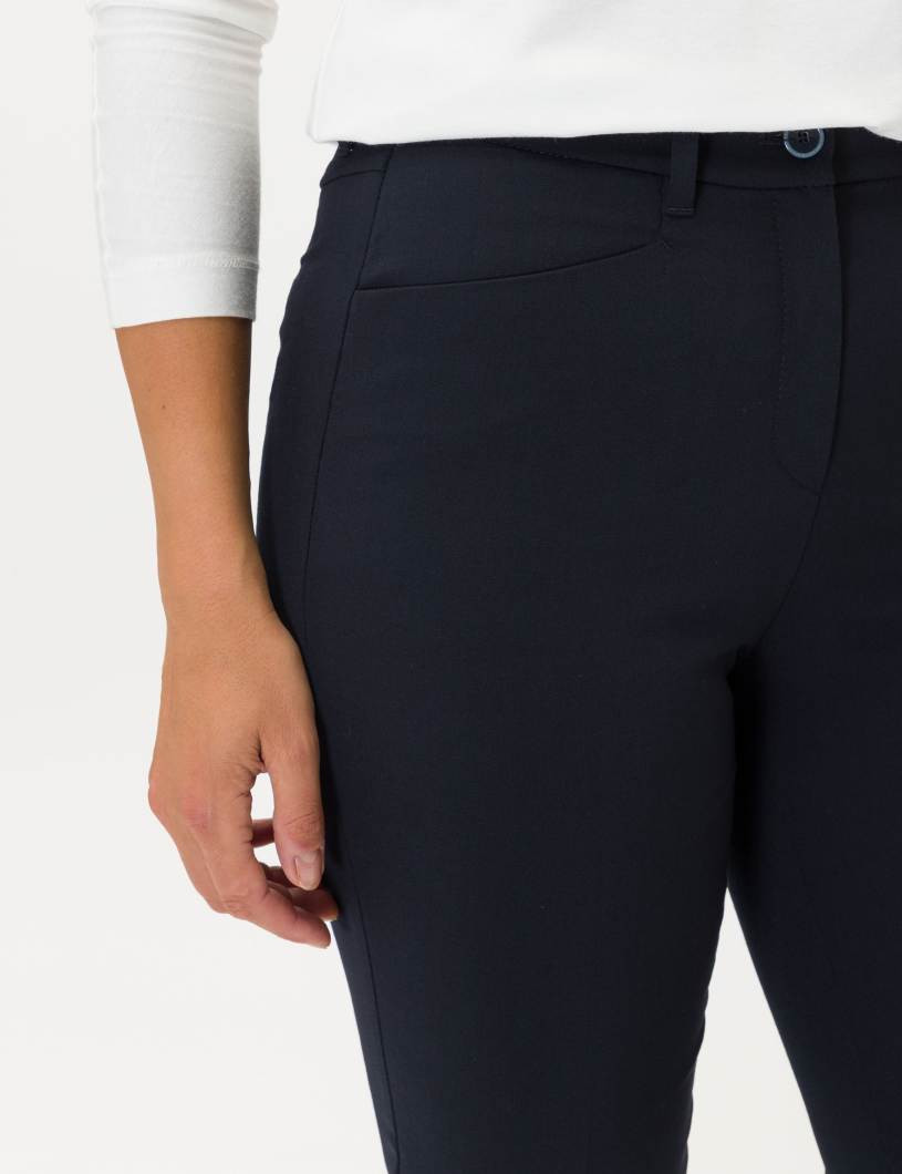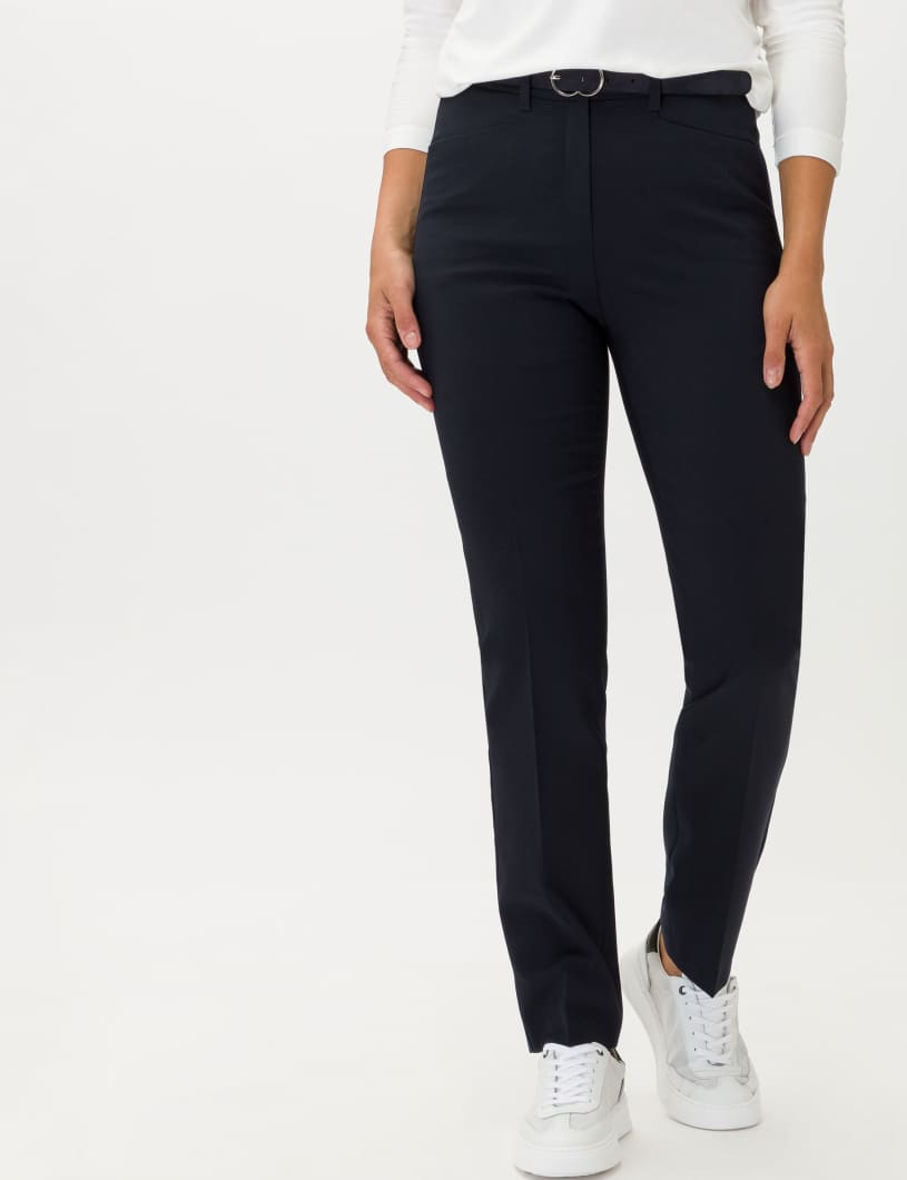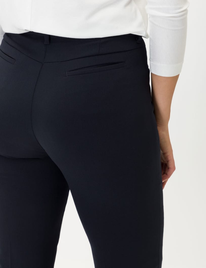 Für Frauen, die Wert auf Mode und Passform legen. Der Style Pauline ist eine Hose für einen stilsicheren Auftritt in jeder Situation. Für die optimalen Trageeigenschaften dieser Cityhose im Slim Fit mit geradem, verkürztem Bein für Damen ist der elastische und waschbare Wollmix mit softer Haptik verantwortlich. Zusätzlichen Tragekomfort bieten das feine Kniefutter und der unsichtbare, aber hochelastische "Magic Waist"-Dehnbund. Dieses neue Lieblingsteil punktet mit elegantem Bügelbruch und einem edlen Warenbild in gedeckten Farbtönen.