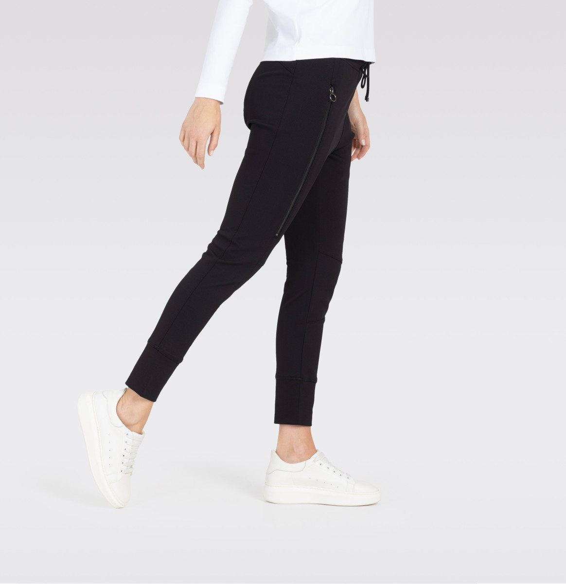 elastischer Bund mit Tunnelzug I Reisverschluss an den Seiten I Ziernähte I Glenchenmuster
