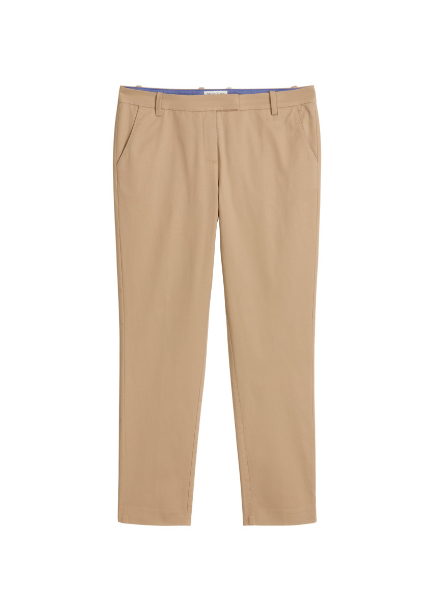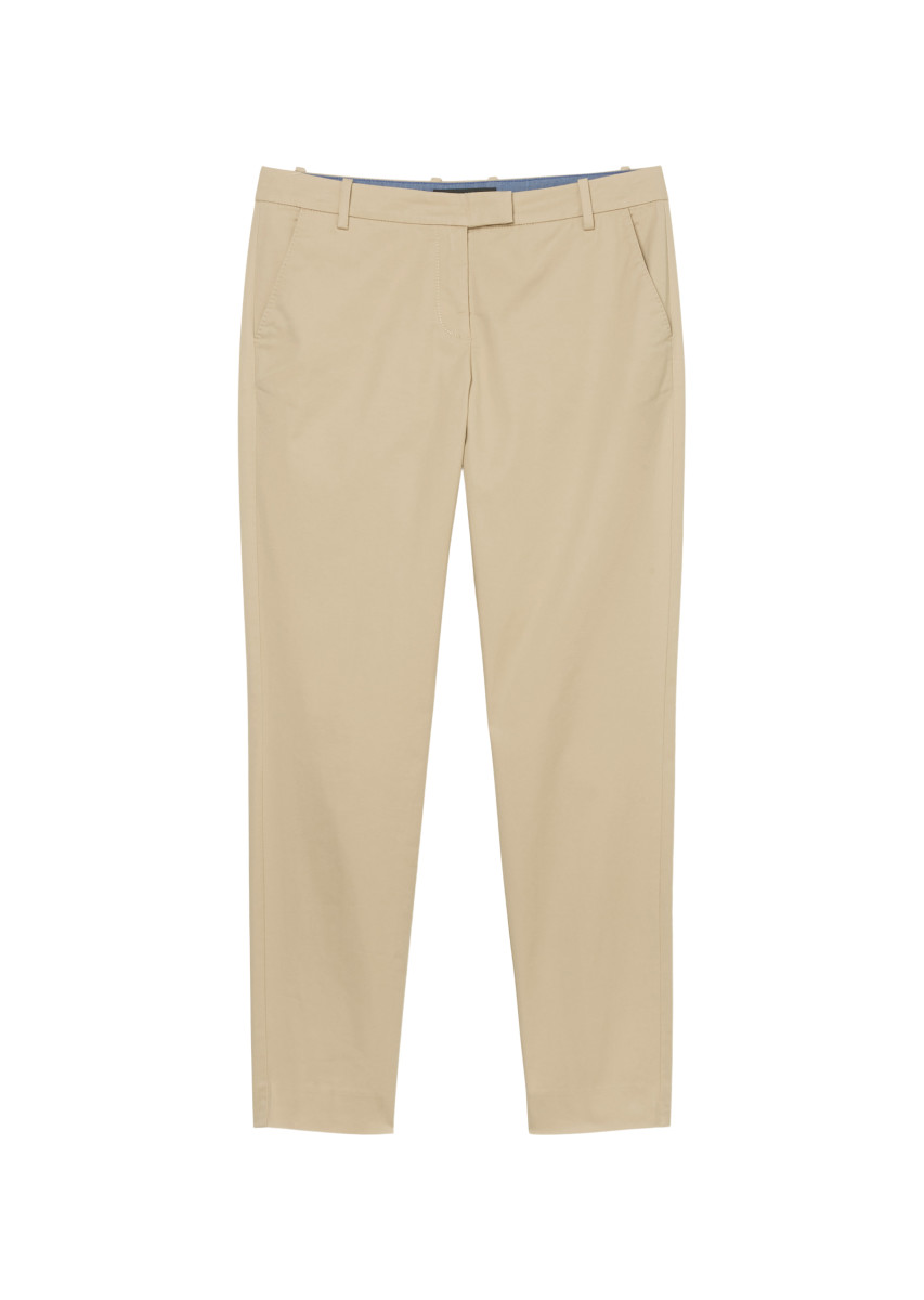 Im Chino-Stil: die Hose aus leichtem Baumwoll-Twill mit angenehm glatten Griff. Das Modell hat eine schmale Passform und ist aufgrund des Elasthan-Anteils besonders komfortabel. Mit schrägen Eingrifftaschen vorne und Paspeltaschen auf dem Gesäß. An den Taschenkanten: dekorative AMD-Stitchings. Besonders hochwertige Innenverarbeitung mit Chambray-Details und gestreiftem Futter.