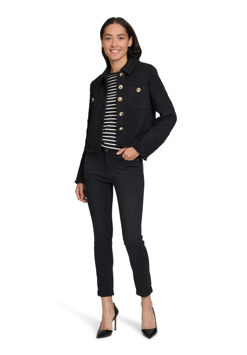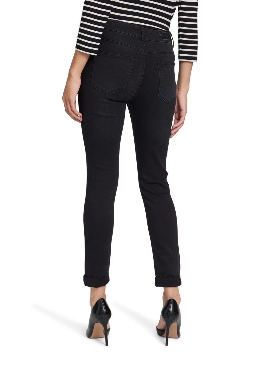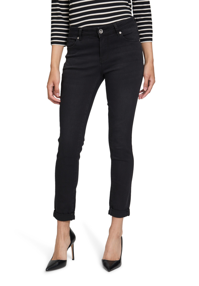 Passform: Slim Fit | Schrittlänge: 68 cm | Fussweite: 29 cm | Längeninfo: 7/8 | Leibhöhe: Mid Waist | Tasche: 5-Pocket | Verschluss: Reißverschluss, Knopf | Muster: Uni