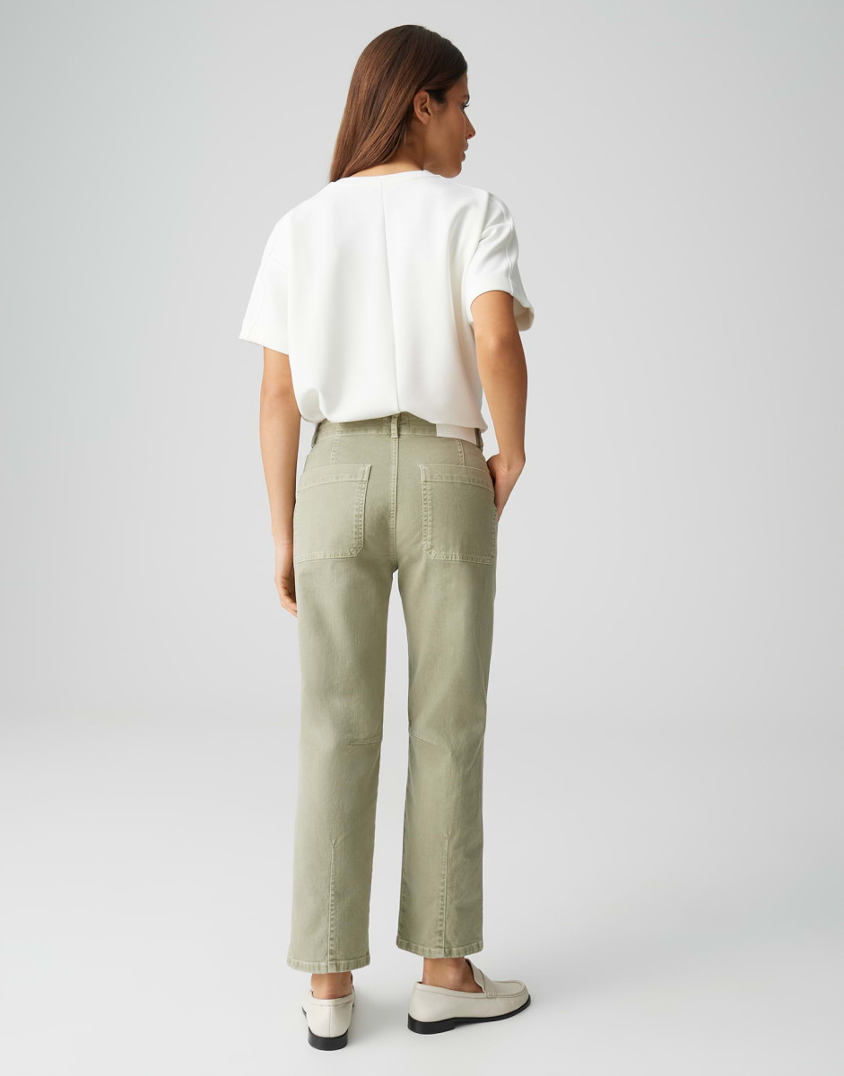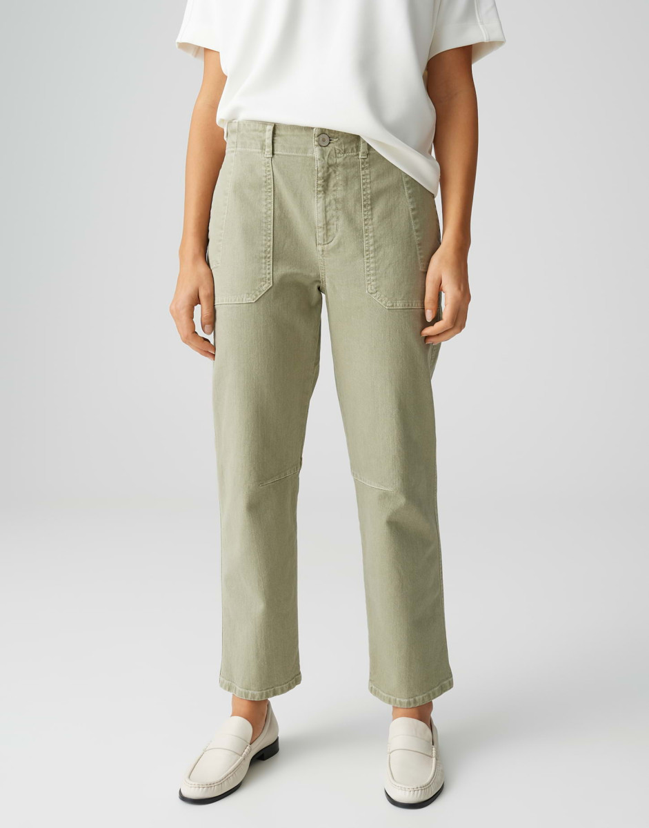 Diese Hose für Damen überzeugt mit einem leicht schmal zulaufenden Bein und einer authentischen Denim-Waschung, die einen festen Griff bietet. Aufgesetzte Cargotaschen, seitliche Eingrifftaschen und ein verdeckter Reißverschluss sorgen für praktischen Tragekomfort und einen modernen Utility-Look. Die vorverlegte Seitennaht akzentuiert die Silhouette und macht die Hose vielseitig kombinierbar.Lief.-Art-Nr: 1054959128423
