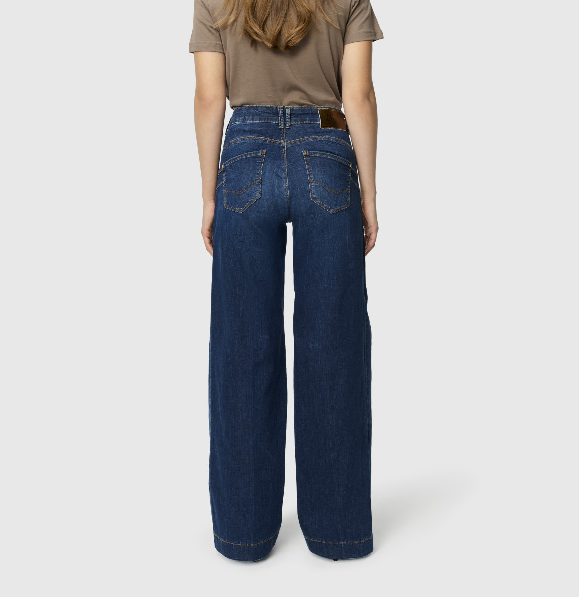 Diese bequeme Wide Fit Hose bietet einen modernen und lässigen Look mit einem extraweiten Bein und einer mittleren Leibhöhe. Das Palazzo-Modell sorgt für eine optimale Passform und viel Bewegungsfreiheit, während die kontrastierenden Nähte und die Nahtdetails an den Gesäßtaschen für eine raffinierte Optik sorgen. Der leichte Denim-Stoff, der einen hohen Baumwollanteil aufweist, ist besonders angenehm auf der Haut und bietet einen weichen Griff. Dank der sommerlichen, temperaturausgleichenden Eigenschaften eignet sich die Hose ideal für warme Tage und sorgt für ein angenehmes Tragegefühl. Die Verwendung von Better Cotton garantiert eine nachhaltige Produktion. Die Hose besticht nicht nur durch ihre authentische Optik, sondern auch durch ihre hervorragende Passform und den hohen Tragekomfort. Die Fußweite bei Größe 36 beträgt 56 cm, was das Gesamtbild der Hose perfekt abrundet. Das Model ist 1,75 m groß und trägt die Größe 36, was die Passform und den Sitz der Hose noch einmal unterstreicht. Ideal für einen entspannten, trendbewussten Look.