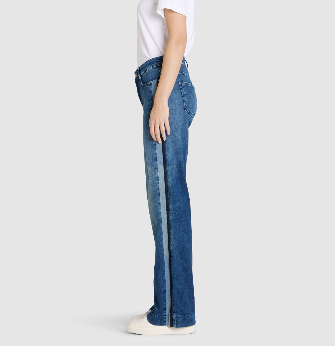 Wide Fit | Wide Leg | Gerades, weites Bein | Mittlere Leibhöhe | Bequeme Taille | Bequem an Gesäß und Oberschenkel | Five Pocket | Moderne Galonstreifen an der Beinseite | Authentic Comfort Stretch Denim | Sehr hochwertige, elastische Denim-Qualität mit Elastomultiester | Authentische Vintage-Waschung | Angenehmer Griff | Hoher Tragekomfort | Über Better Cotton gesourcte Baumwolle | Das Model ist 1,75m groß und trägt die MAC Hosengröße 36 | Fußweite bei Größe 36: 52cm