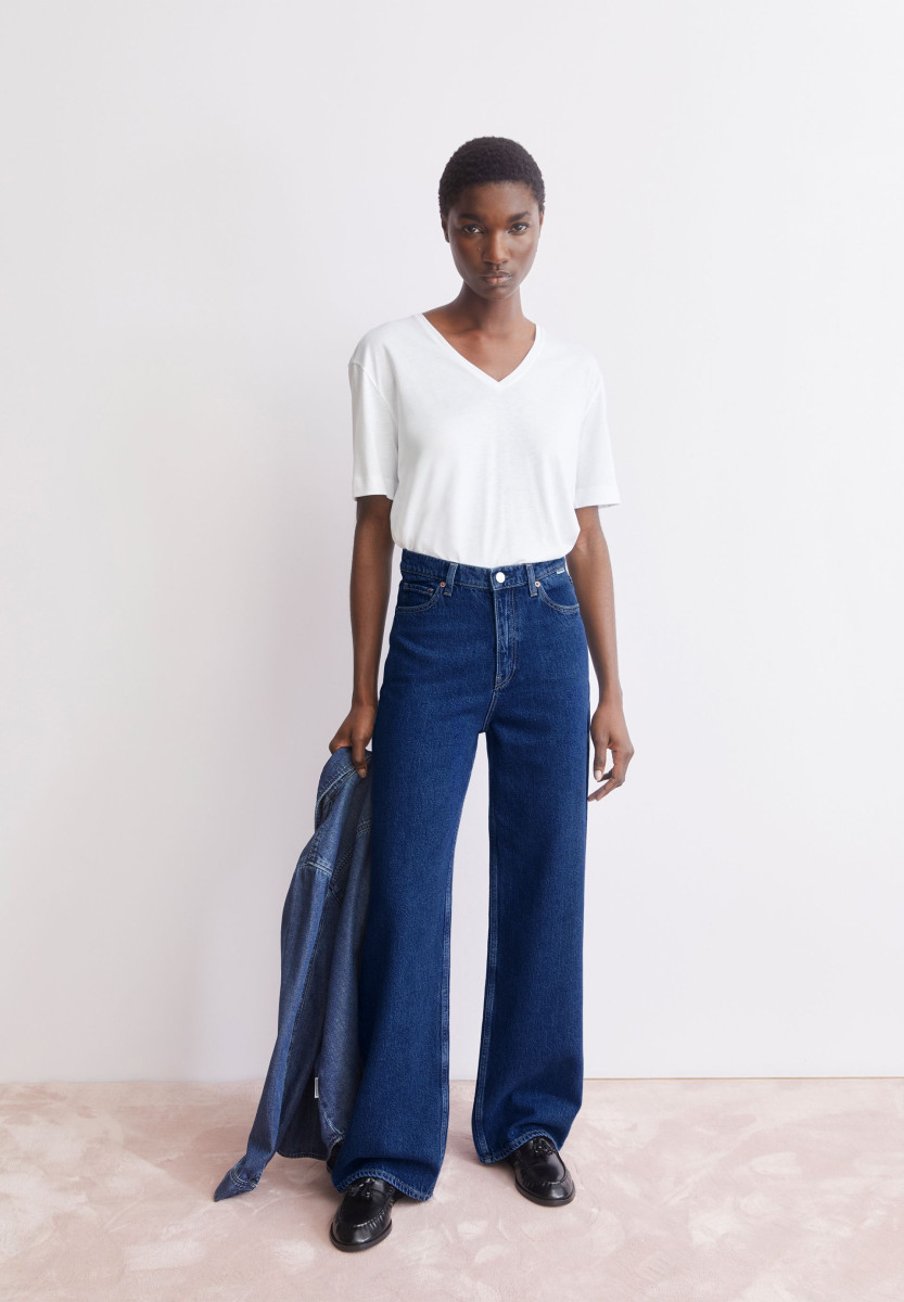 Die ENIJAA High Waist Wide Jean ist eine weit geschnittene Damenjeans mit hoher Taille, die sich für lässige wie auch gepflegte Looks eignet. Die weite Silhouette und der gerade Fall des Beins erzeugen einen modernen, komfortablen Schnitt. Der Stoff ist als TENCEL™ Lyocell-Mix ohne Stretch angegeben und bietet eine weiche Haptik.Lief.-Art-Nr: 30008457