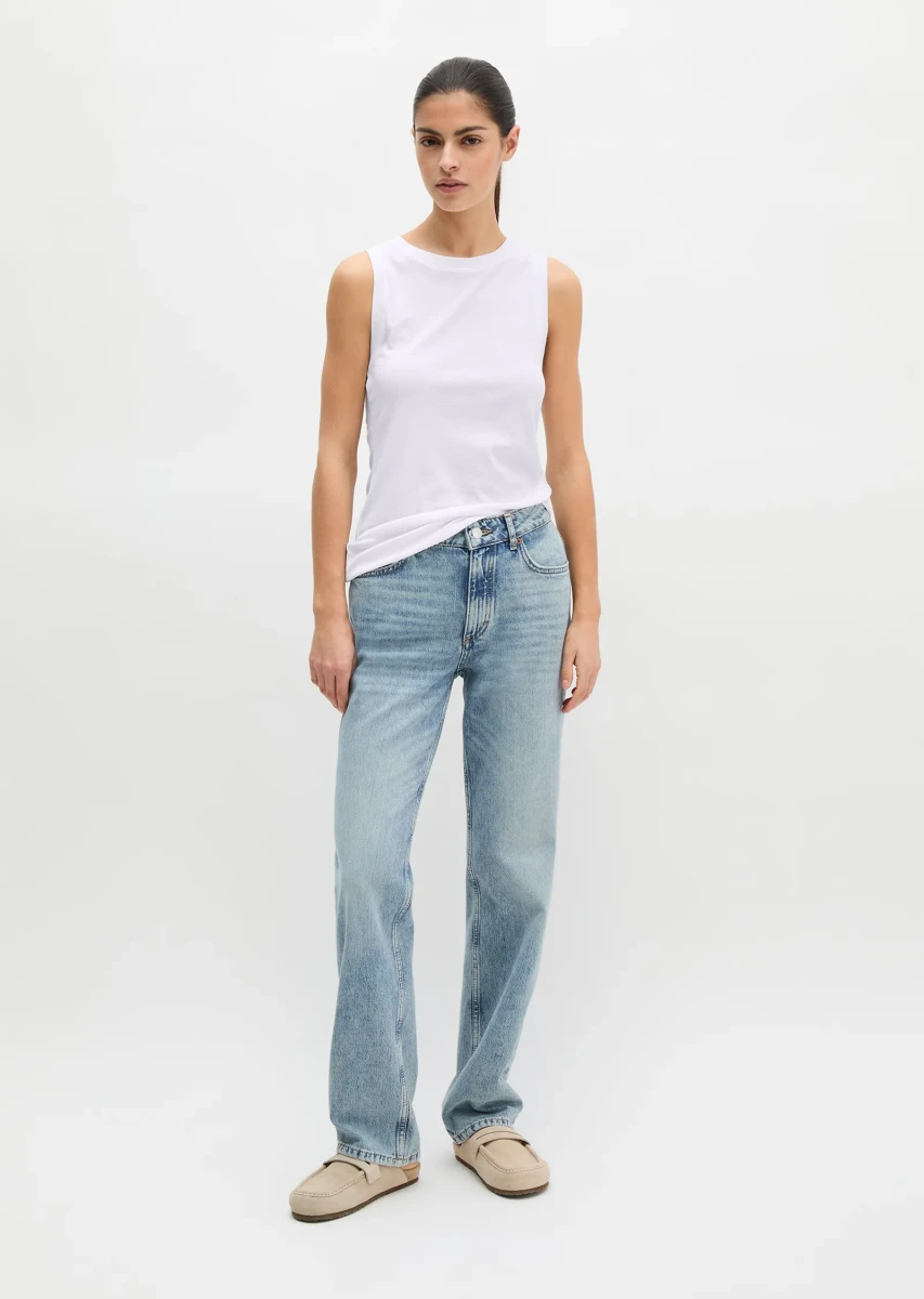 NEW FIT! Die Jeans Model Elin straight verkörpert den nostalgischen Flair der 90er-Jahre mit modernen, zeitgenössischen Elementen wie keine andere. Mit ihrer unaufgeregten Eleganz hat sie sich zwischen all den Jeans-Schnitten von hauteng bis ultraweit einen festen Platz im Kleiderschrank gesichert. Sie hat eine normale, hohe Taille, ein gerades Bein und ist in extra langer Länge erhältlich. Der lässige Five-Pocket-Style wird durch die charakteristischen, tabakfarbenen Nähte, die authentische Light-Blue-Waschung und die dauerhaft eingearbeiteten Sitzfalten unterstrichen. Die Qualität: ein hochwertiger Denim aus reiner Bio-Baumwolle ohne Elasthan.