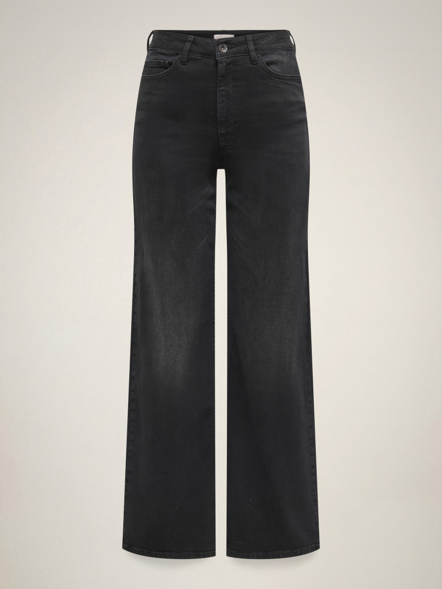 Diese Wide Fit Jeans für Damen überzeugt mit hoher Taille und einem lässigen Schnitt, der von der Hüfte bis zum Knöchel viel Bewegungsfreiheit bietet. Praktische Gesäßtaschen, eine Münztasche, vordere Taschen sowie Gürtelschlaufen machen die Hose alltagstauglich und vielseitig kombinierbar. Ob im Büro oder in der Freizeit, die Jeans bietet einen komfortablen Sitz und einen modernen Look, der sich leicht zu verschiedenen Outfits kombinieren lässt.Lief.-Art-Nr: 15350535-JDYFELINA-FINA HW WIDE BLK JEAN